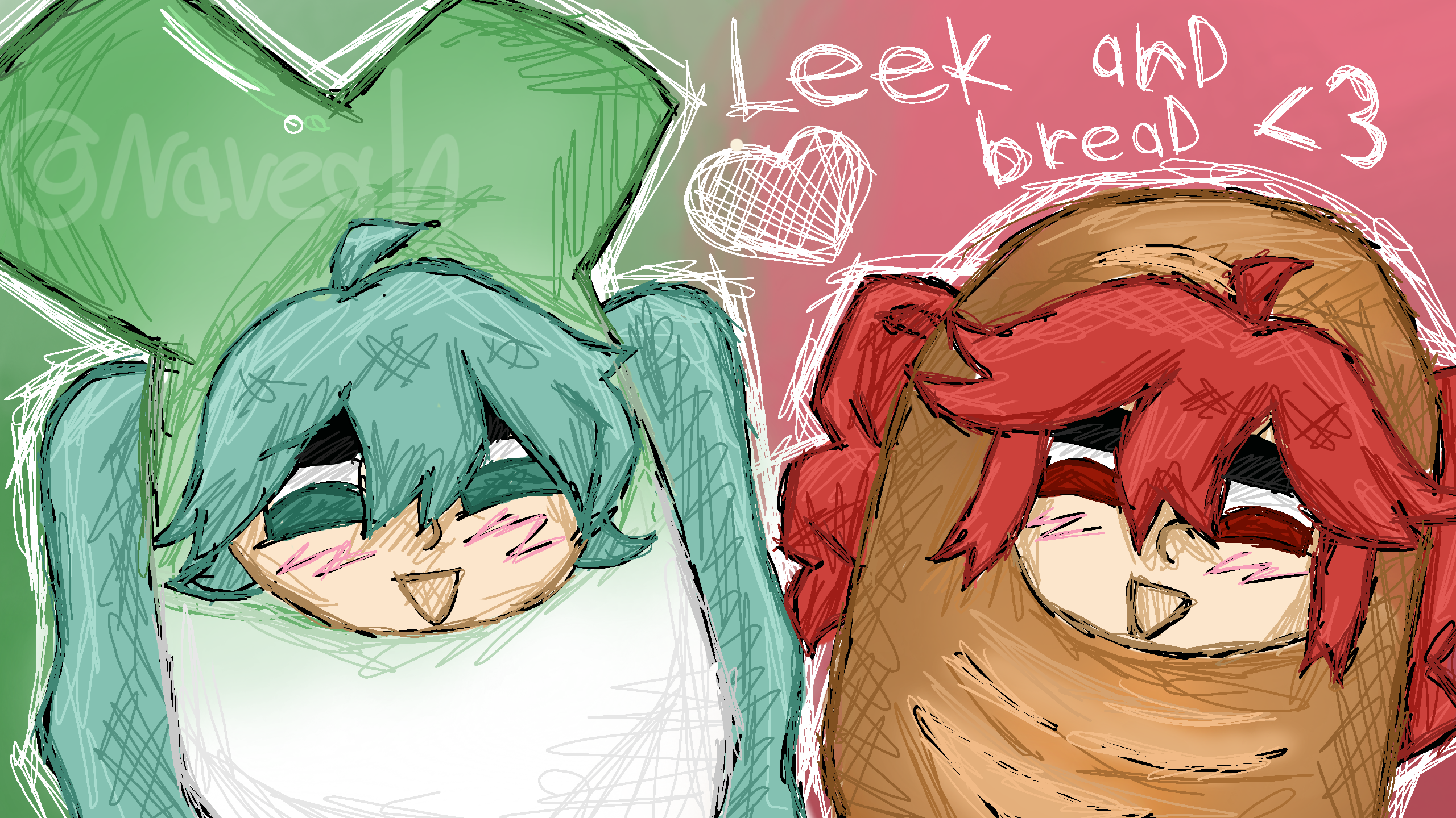 #Miku #hatsunemiku #teto #kasaneteto #eheh #bread #leek #vocaloid #red #blue #Nstarz