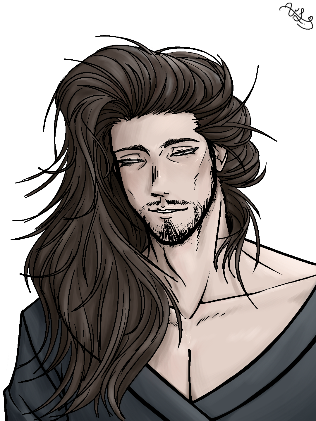 I drew this starting out with "man with long hair" then it turned into hair and rendering practice somehow