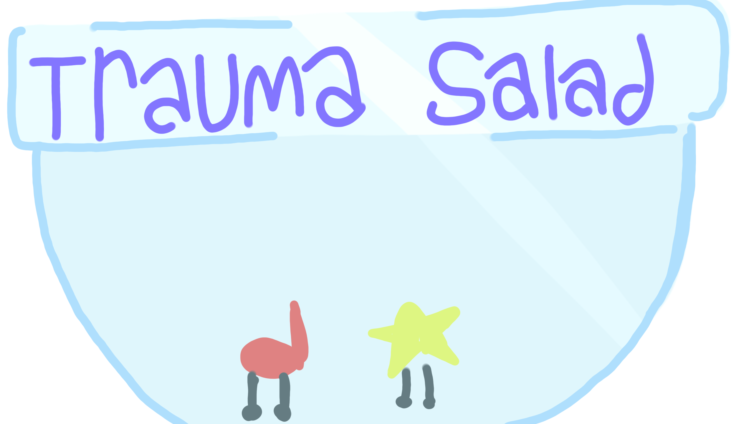 un trauma salade il faut reconter un truc qui nous est arriver et qui nous a trauma perso j'ai failli me faire renverser deux fois la premiere la voiture elle a apparu de nul part dc je lui est fait doigt :skull: et la j'avaispas regarder et je me suis excuser