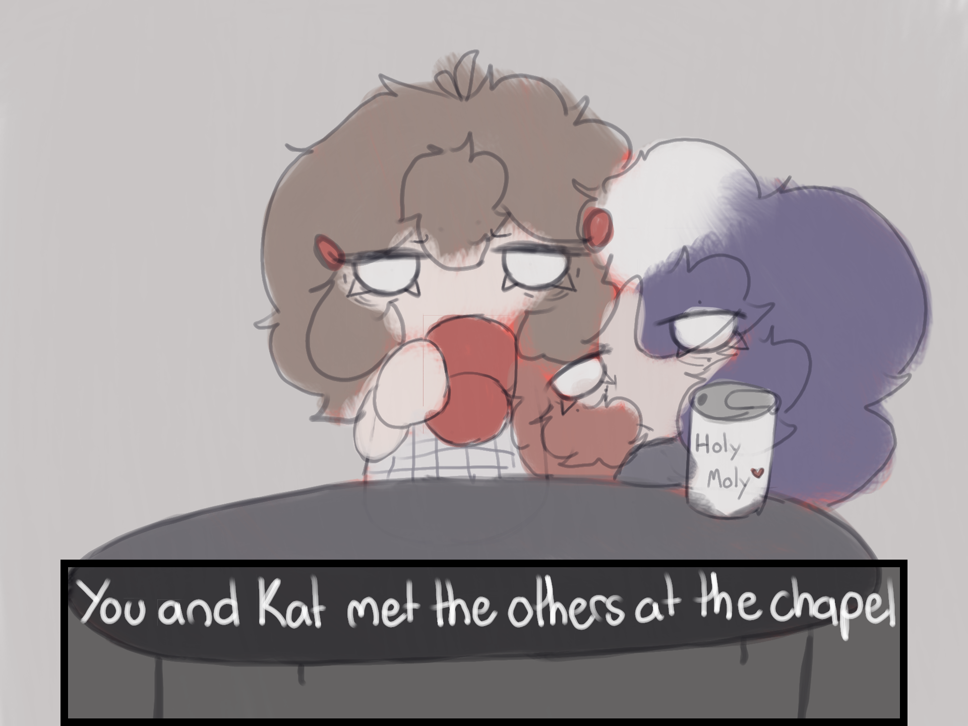 You and Kat met the others at the chapel. Kat makes herself and you a drink. She loads yours with enough sugar to kill someone but she knows you like it that way and it always seems to improve your mood. As the others pour in, you know they have tea, herbal and verbal but you also know the best always seems to come out when you're "asleep" and its usually about you so you close your eyes and pretend to drift off