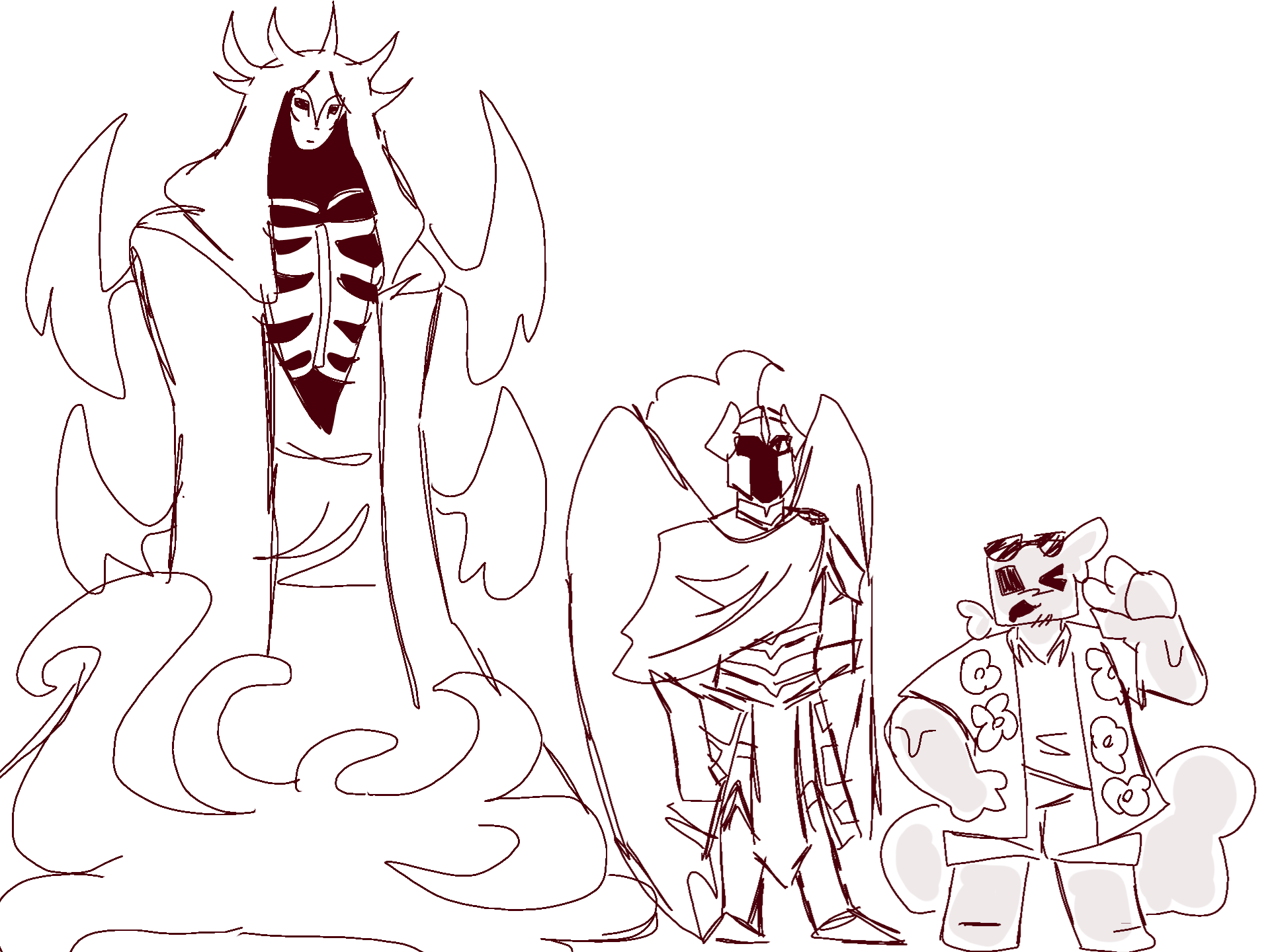 oke so the eldritch horror is King in yellow, D3rlord3 is the birb man knight and Avery is the slem