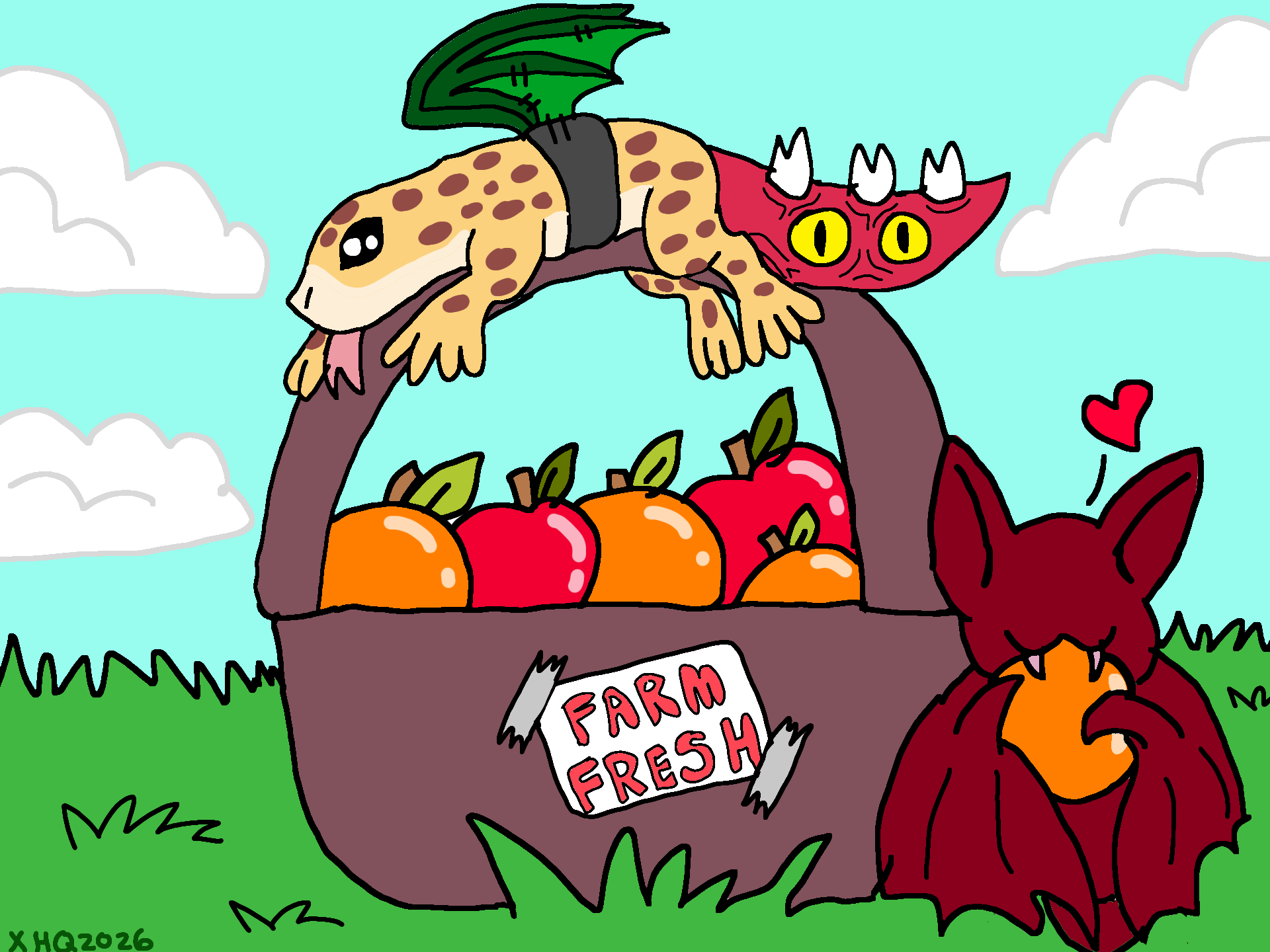 Draco and Wings (his pet Screech) are enjoying the fresh fruit they got at the market