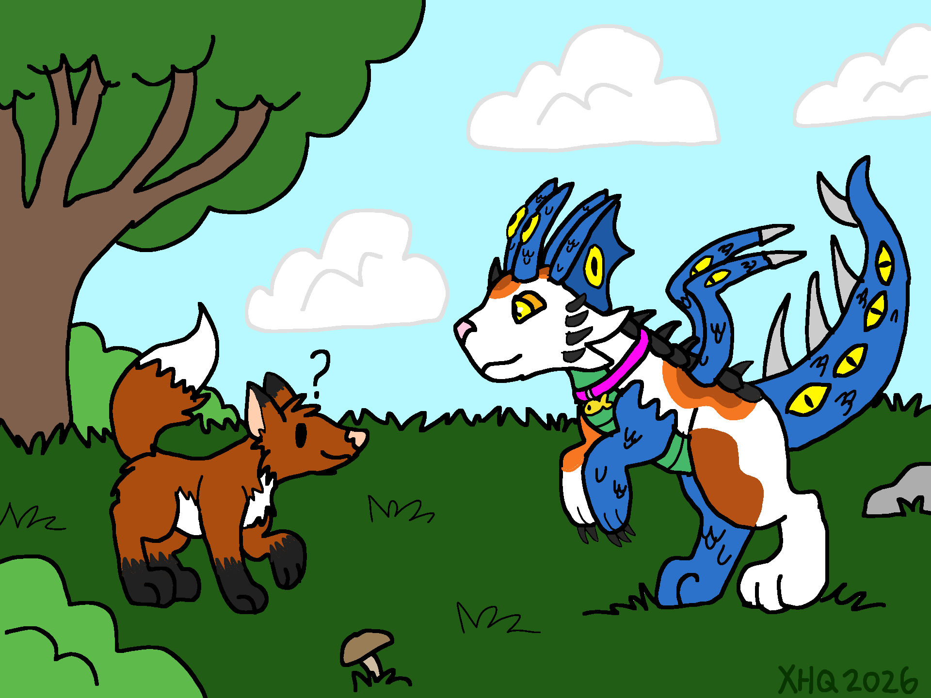 Gamble met a fellow trickster while out critter spotting :3