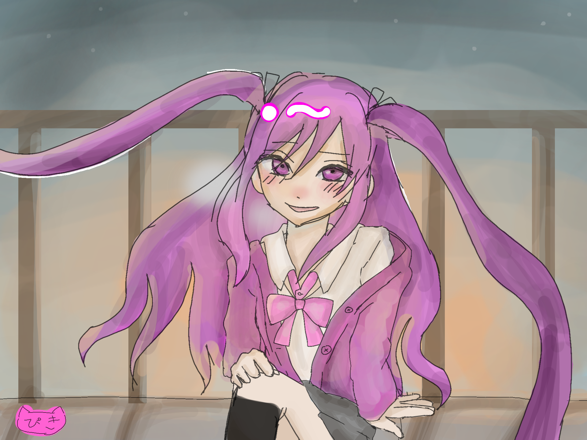 え、え、やばい!!!!がちで嬉しいよ;;;;;;´Δ`;;;;;;背景も綺麗だ、!えやばいほんとにうれしすぎる、、!!!!!!!!!!めっちゃかわいく塗ってくれてありがとう;;;;;;;><;;;;;;;;私のんちゃんの描くハイライトめちゃ好きなんだよ!!ほんとにやばい嬉しい★∀★何回言うんだよだよね厚塗りな感じがかわいすぎる♡♥♡♥♡リボンとカーディガンのピンクもまぢかわいいああああああ制服の色のセンスよすぎ!!スカートグレーで靴下黒なの可愛いいいいいいいい過ぎるよ!!!!!!!!ほんとありがとう;;;◎_◎;;;