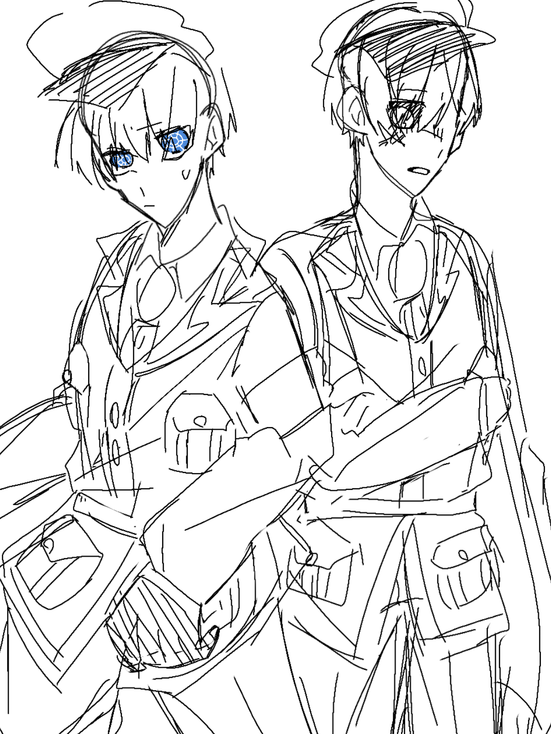 やっぱ軍服はいいよなぁ...公式の軍服潔と凛、でこ出ししてたのまじで尊くて滅(?)服のシワ上手く描けた #凛潔