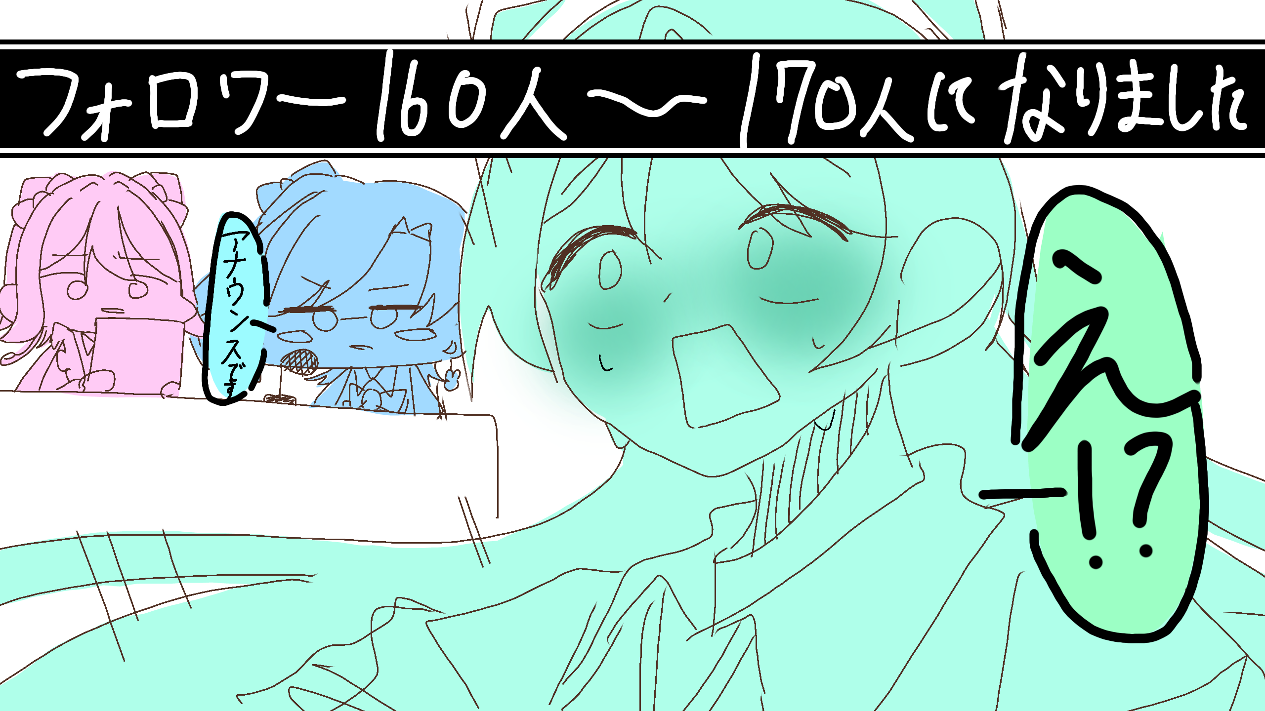 いつも素敵なイラスト見させて頂いてます!170人おめでとうございます!!一瞬で180人いっちゃいそうですね...!!これからも頑張ってください!!