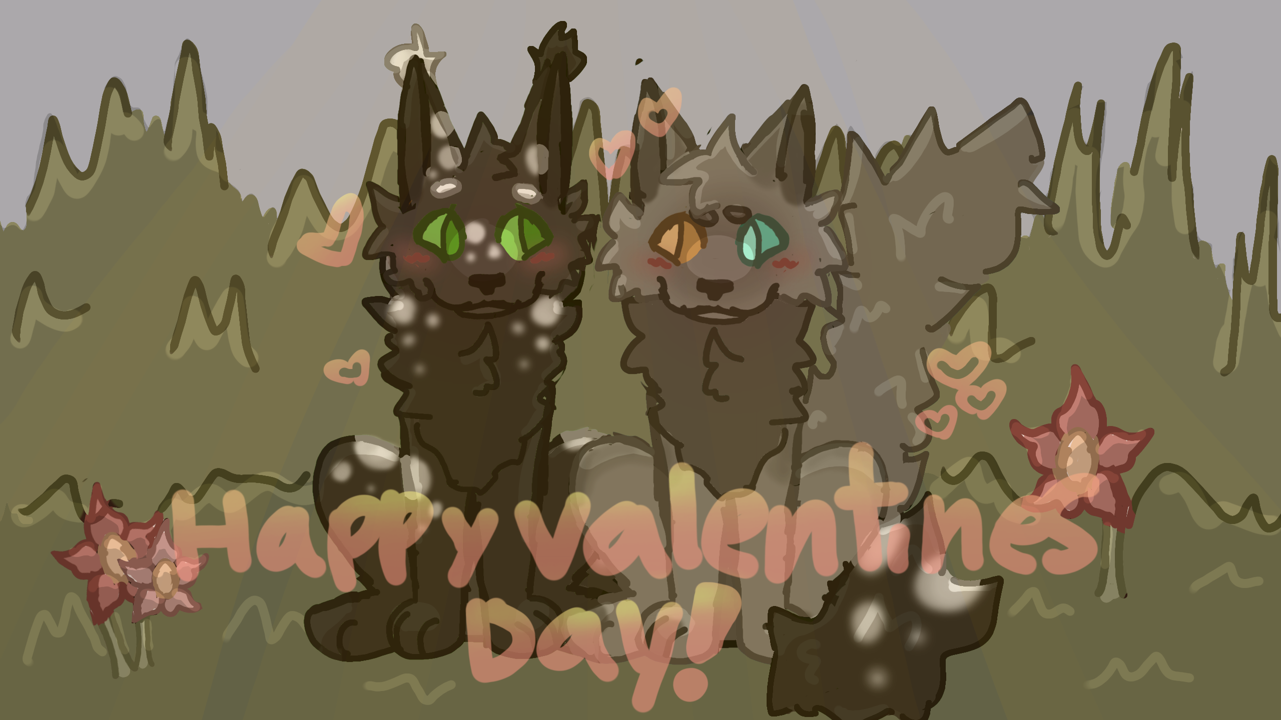 :heartpulse: Happy Valentines Day! :heartpulse:These are two of my OCs DarkLeaf and GreyPulselol sorry ik this is a little late