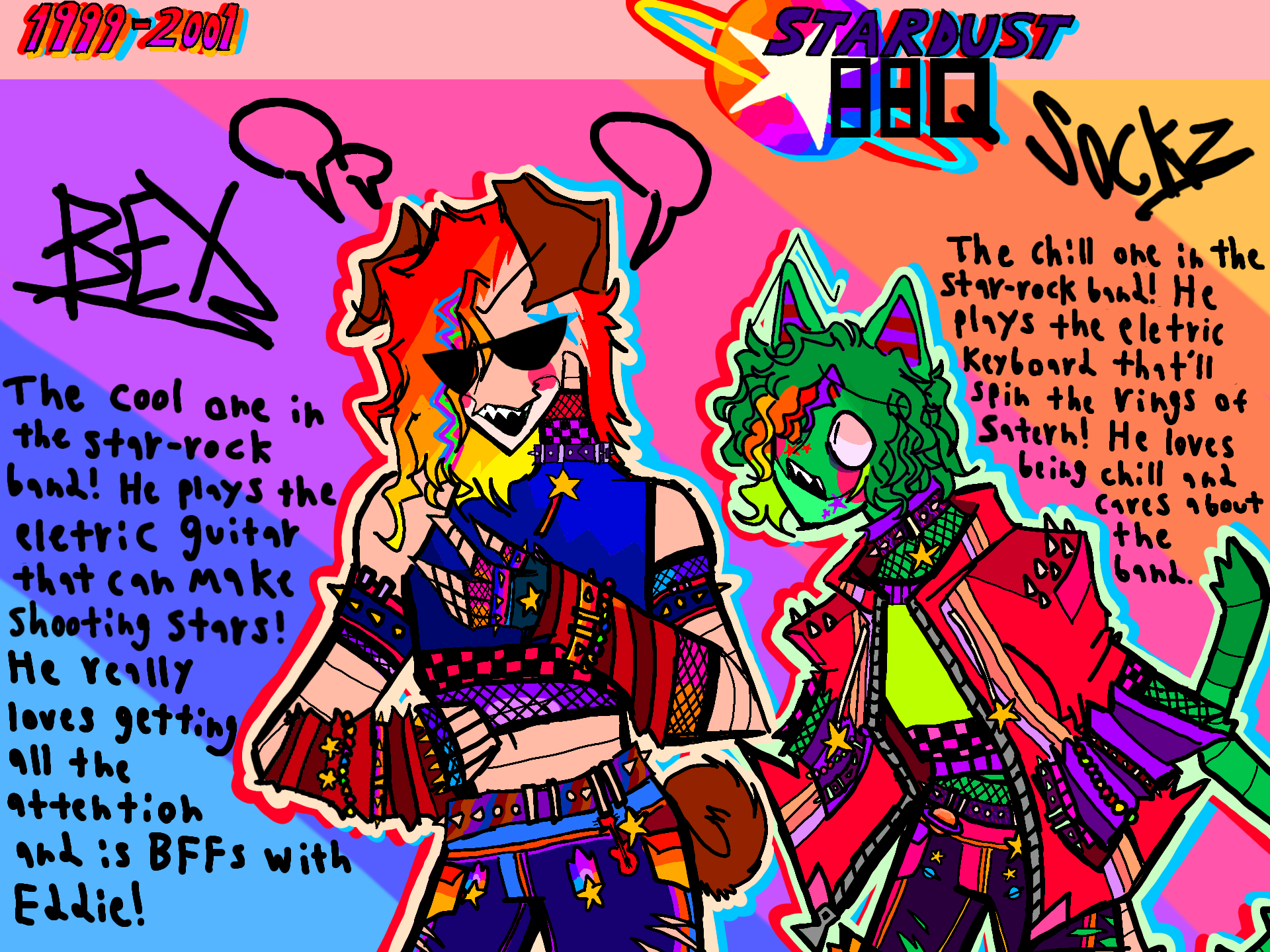 Also, I heavily doubt you intended this, but the whole "space-themed animatronic rockstars" thing reminds me of this old animatronic band from the 1980s called the MoonRockers.