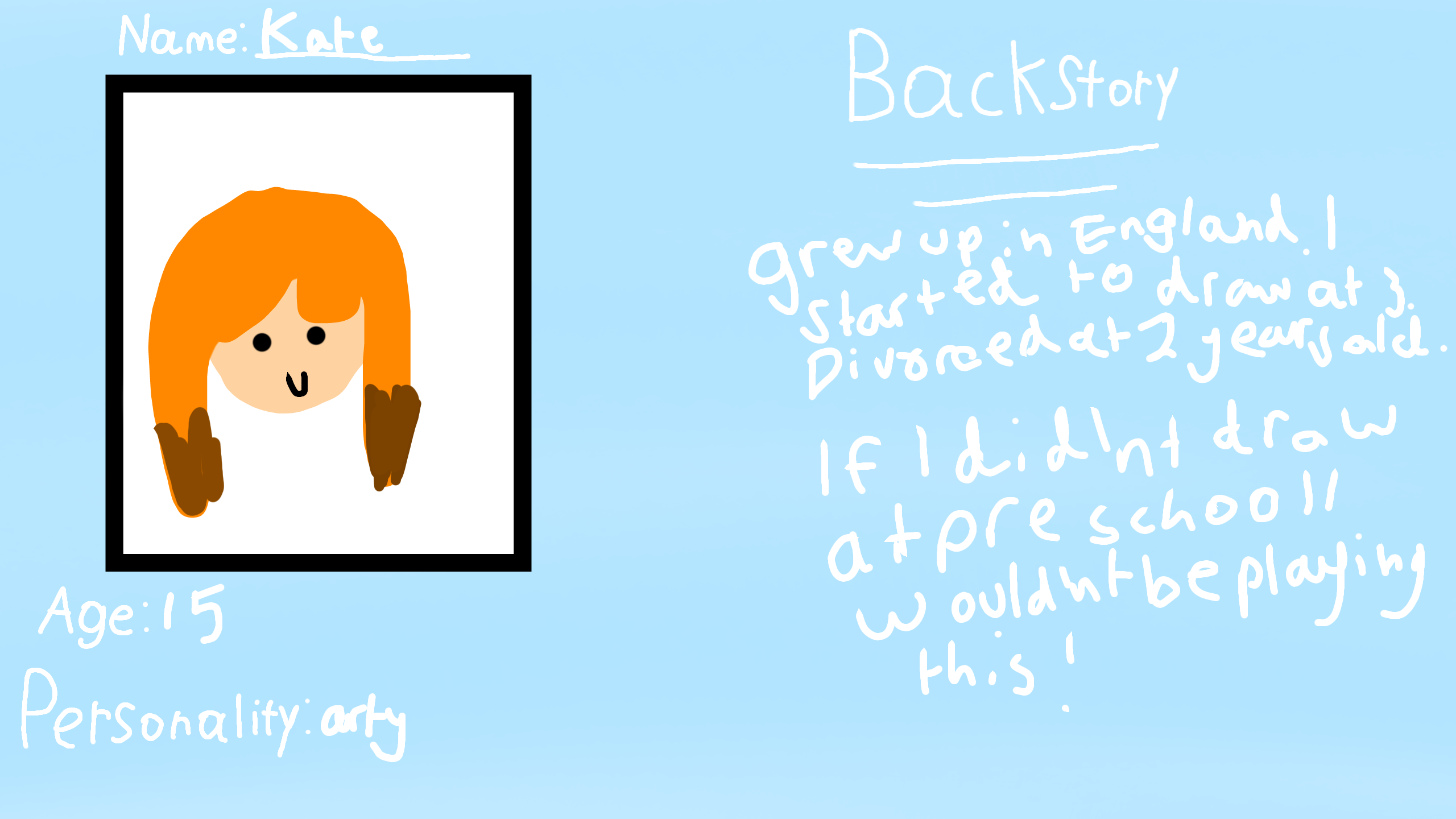 Name:KateAge:15 (terrible at art)Inventory:Phone,Switch,book #infectionstory