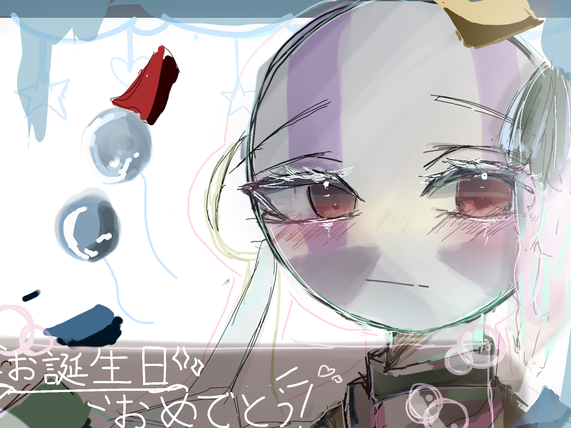 上手すぎやろがい(?)本当に本当に癖にぶっ刺さりまず:)))))))心臓なくなりました(?)ありがとう(?)おめめ!!おめめめめめめもきれいきれいしてるっ....!!!!ふつくしい.....傷一つも傷付かず輝いてきた宝石みたい.....もうなに?!全部が飛び出して来てるのよ....;;;;;;;;背景も綺麗で....(¡△¡)羨ましいぃぃくうちゃんを崇める宗教みたいなのありますか(?)あったらぜひとも入ってわたくしの画力を捧げますので....(????)ウワアアアアアアアアアアアアア"""""もうなんかいっぱい褒めたいのに語彙力無さすぎるし観察力無さすぎる....(;;)本当にごめんね...()でも描いてくれて本当に本当に本っっっっ当にありがとうぅぅぅ!!!!!!!!!(((((( °°°>"<°°°)))))))=♥♡♥♡♥♡♥♡最高の誕生日ダヨォォォォ!!!!!!反応遅れちゃってゴメンね...!あと保存大丈夫かな...?!!!これからもよろしくね!!!!(///`∀´)>=テェーィ!