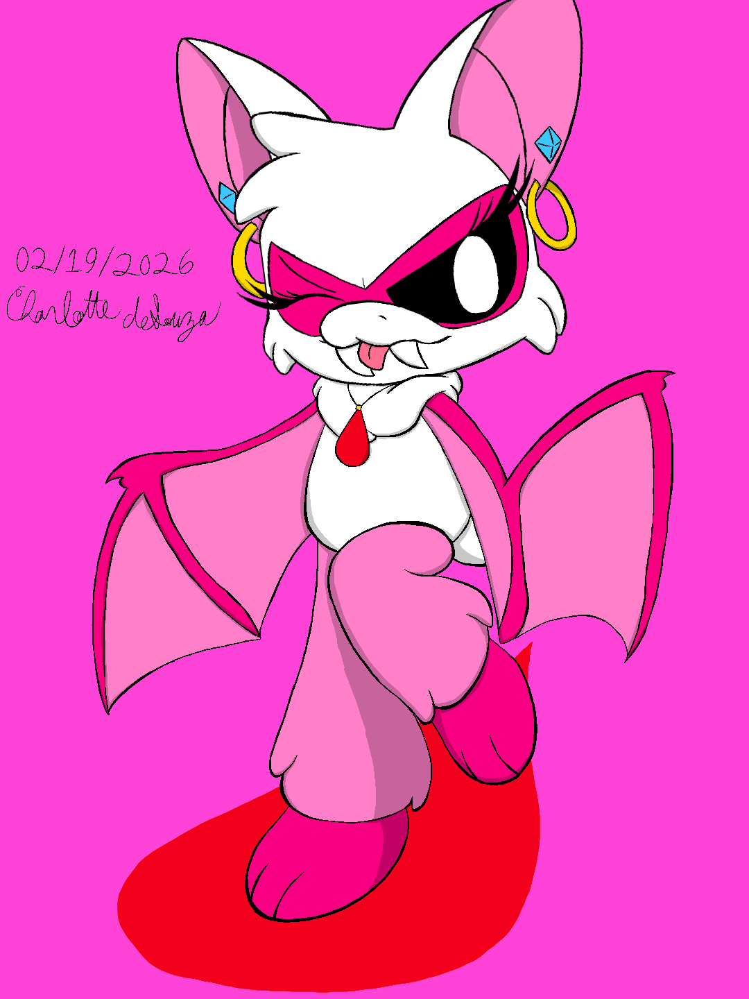 Honestly, you think there would be a better name for this kind of Nightmare Critter... Sadly, I don't have any better names. Still, it is appropriate for a vampire bat, so are the earings and her sticking her tongue out in such a mischievous way! #poppyplaytime