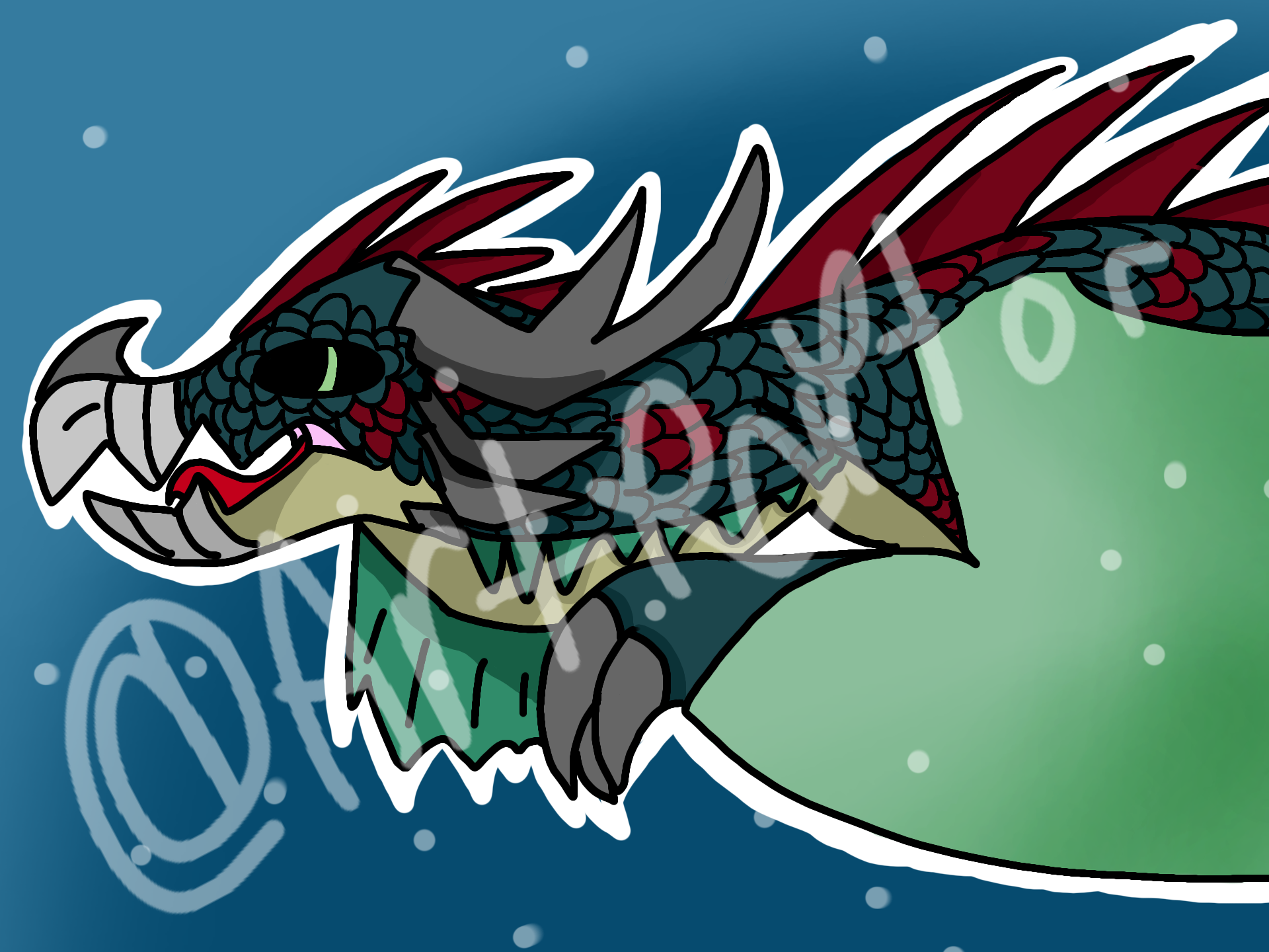 Drawing of a dragon underwater