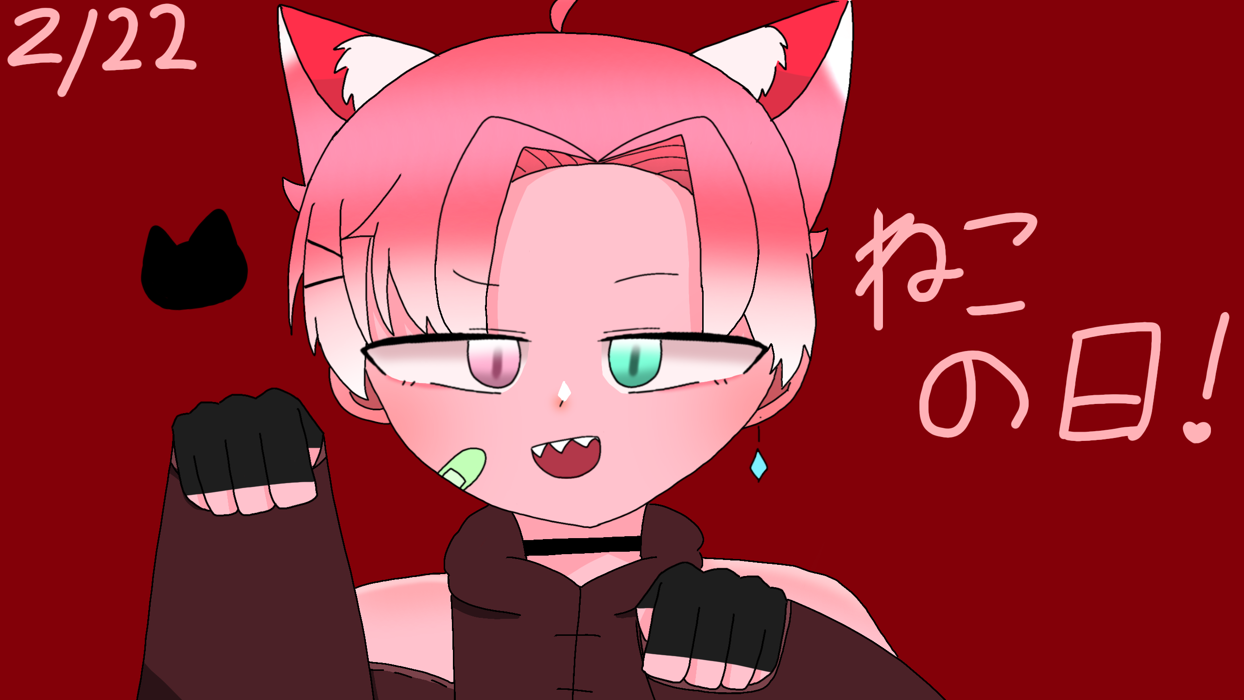 今日は猫の日ですね!ということで猫の日イラストです!肌の色ピンクにしたんですけど違和感あったらすみません時間おいて見たけどやっばい肌の色違和感しかない #夜空はる #猫の日あ、肩のホクロ忘れた…銀星2つありがとうございます!