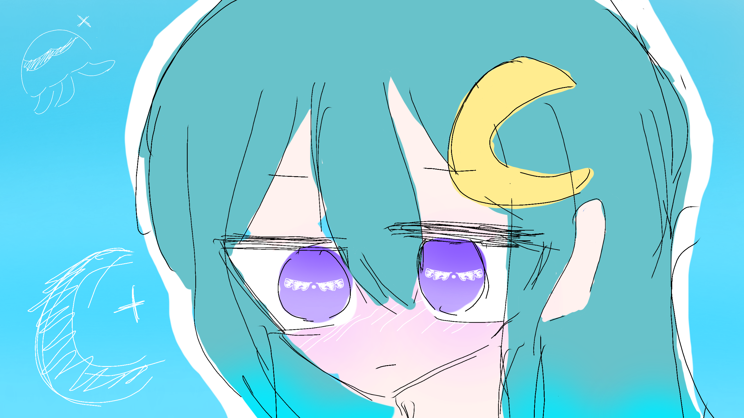 できた!ごめん下手で。髪をおろしたverでかかせてもらったよ!(勝手にごめんなさい)お呼びだし @Ayase_rarugoタグ付け失礼します #三日月に浮かぶくらげ