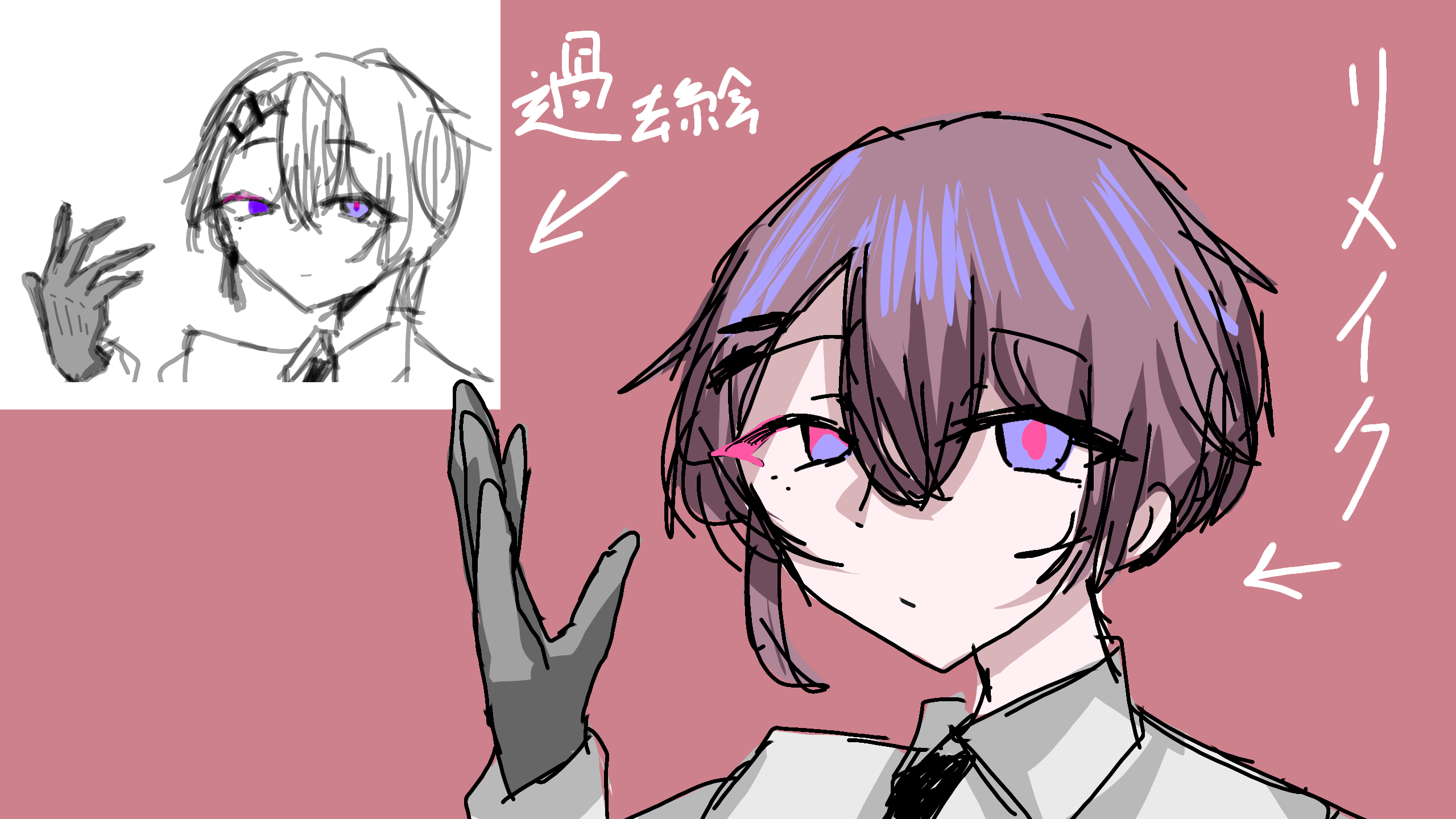 てか今日NRTテスト休んでた分今日終わったんですよ!疲れたあとアメツユさんのイラコン絵ちゃんとやってます!多分明日か明後日投稿できると思う!最近大離散の髪色が便利なことに気づいた