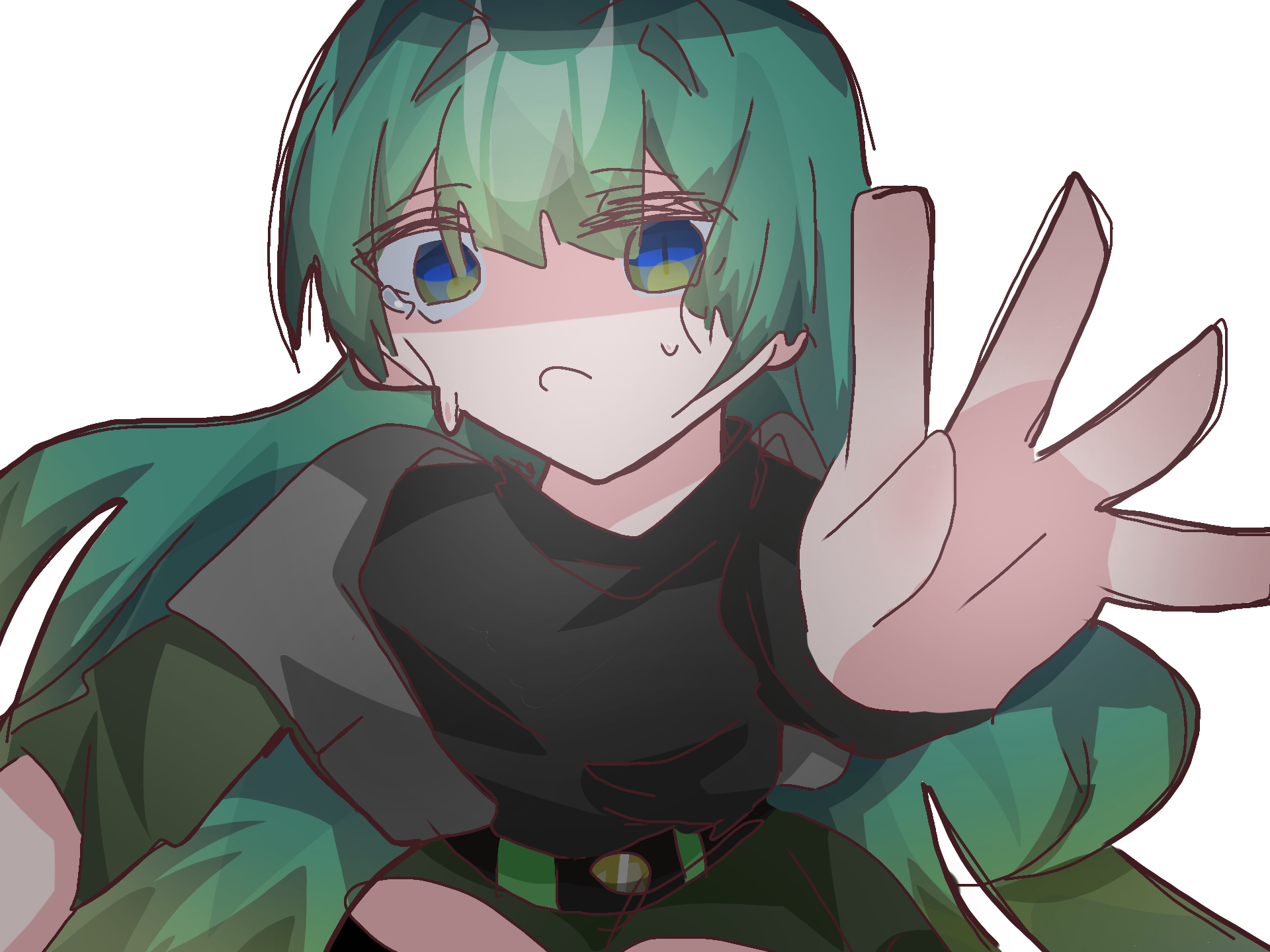 うわおあおああおあぁっぁぁぁっ!!!!!!!かわいいし絶望してるのとてもよき、、;;;;そんなに想像してくれるの嬉しすぎて!!!!!><><ありがとう、、ありがとう、、お陰で私が生きられる(?)髪のちゅるちゅる(?)感とか服のシワの感じリアルですごすぎる、、髪の毛なんてもう宝石じゃん(??)私の線画がめっちゃすごくなってて嬉しい、!!塗ってくれてありがとうーー!!!