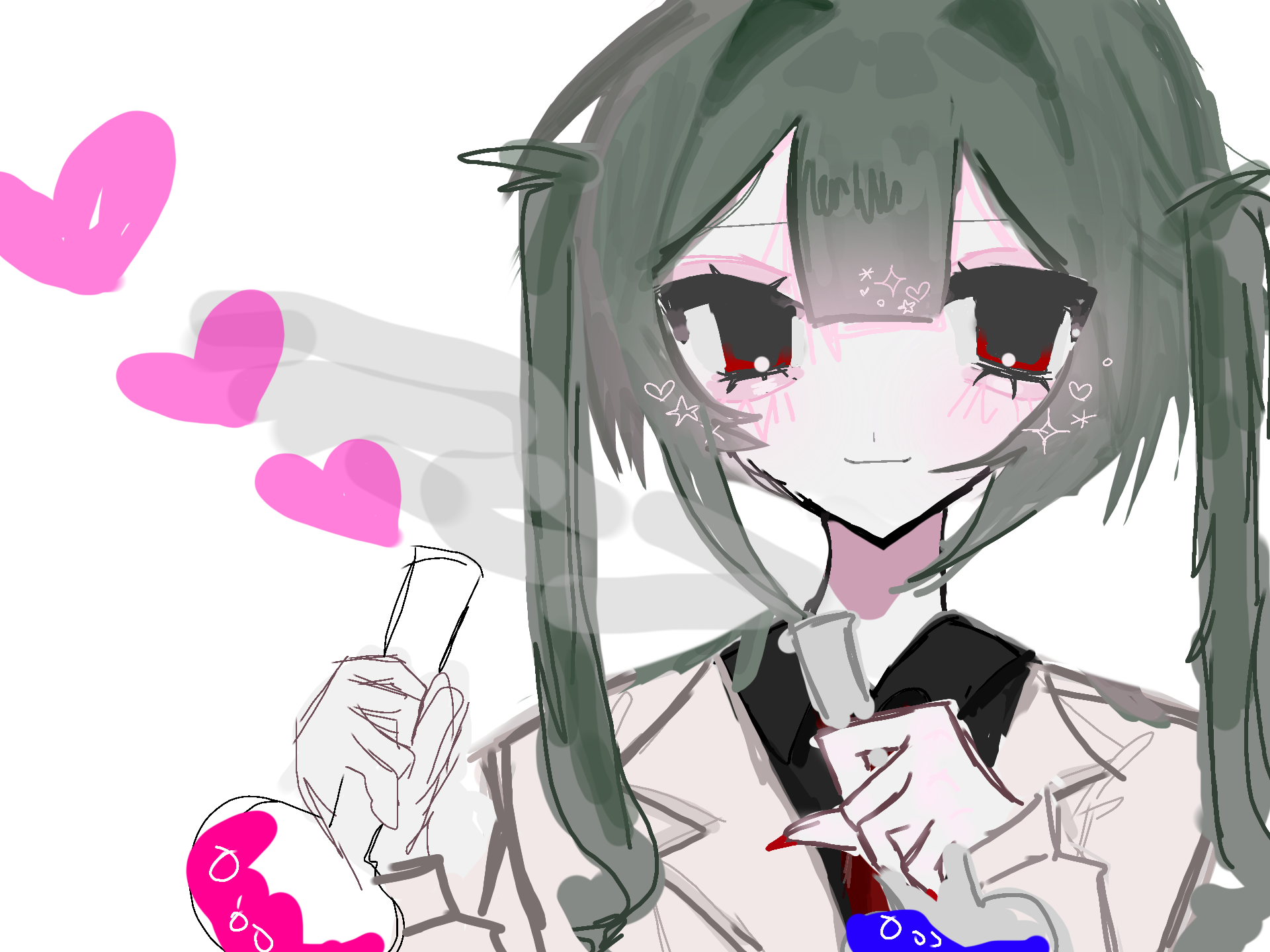 vわ(略)ちゃんをかいたあとに無理やりqtmちゃんを描いているのでやけくそ♡♡♡