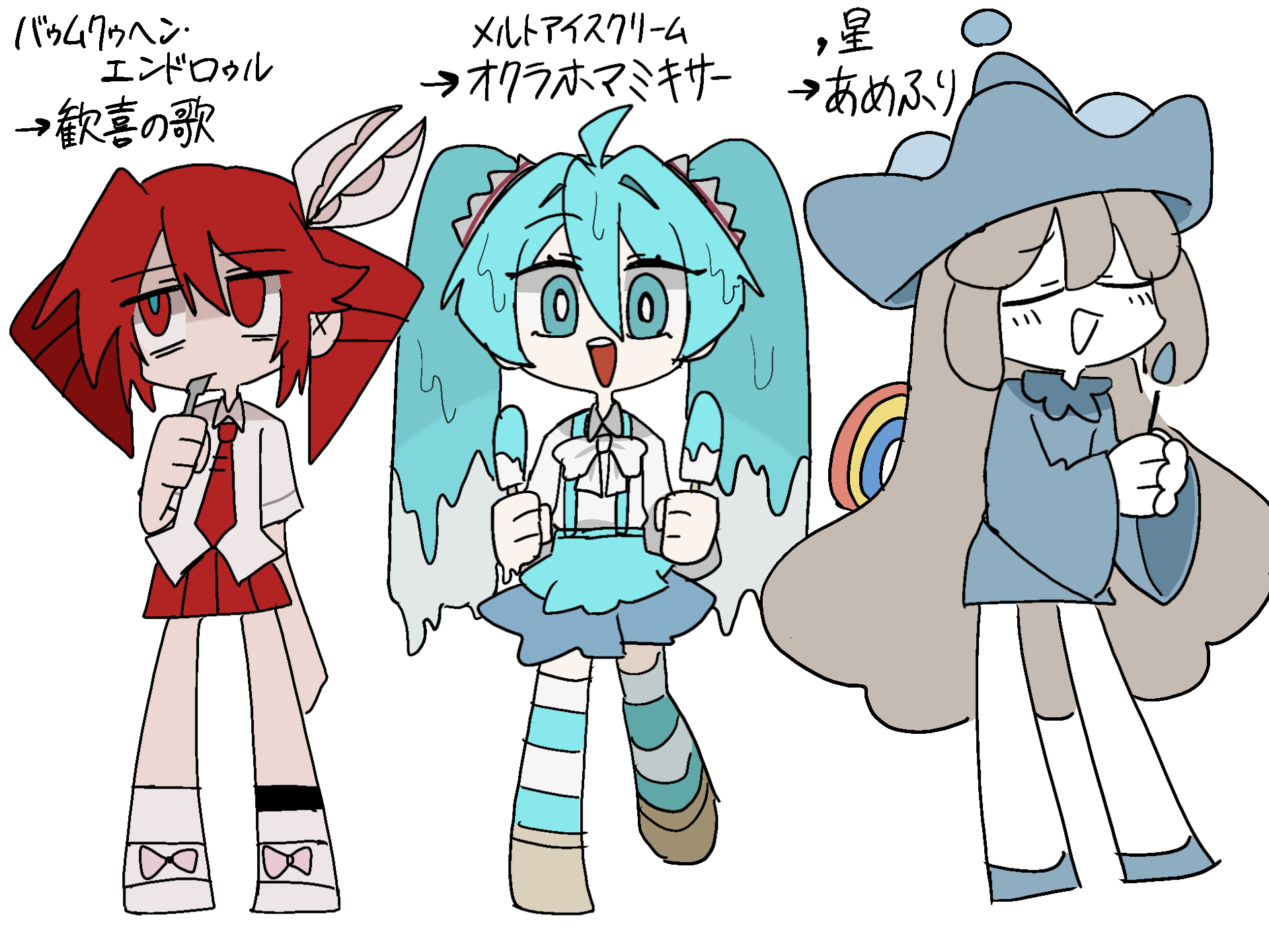 みんな知ってる曲のフレーズが入ってる曲、すき左からバゥムクゥヘン・エンドロゥル-雨良 Amalaメルトアイスクリーム-TRAP CHICK, 星-マキシウキョウ金星あざす