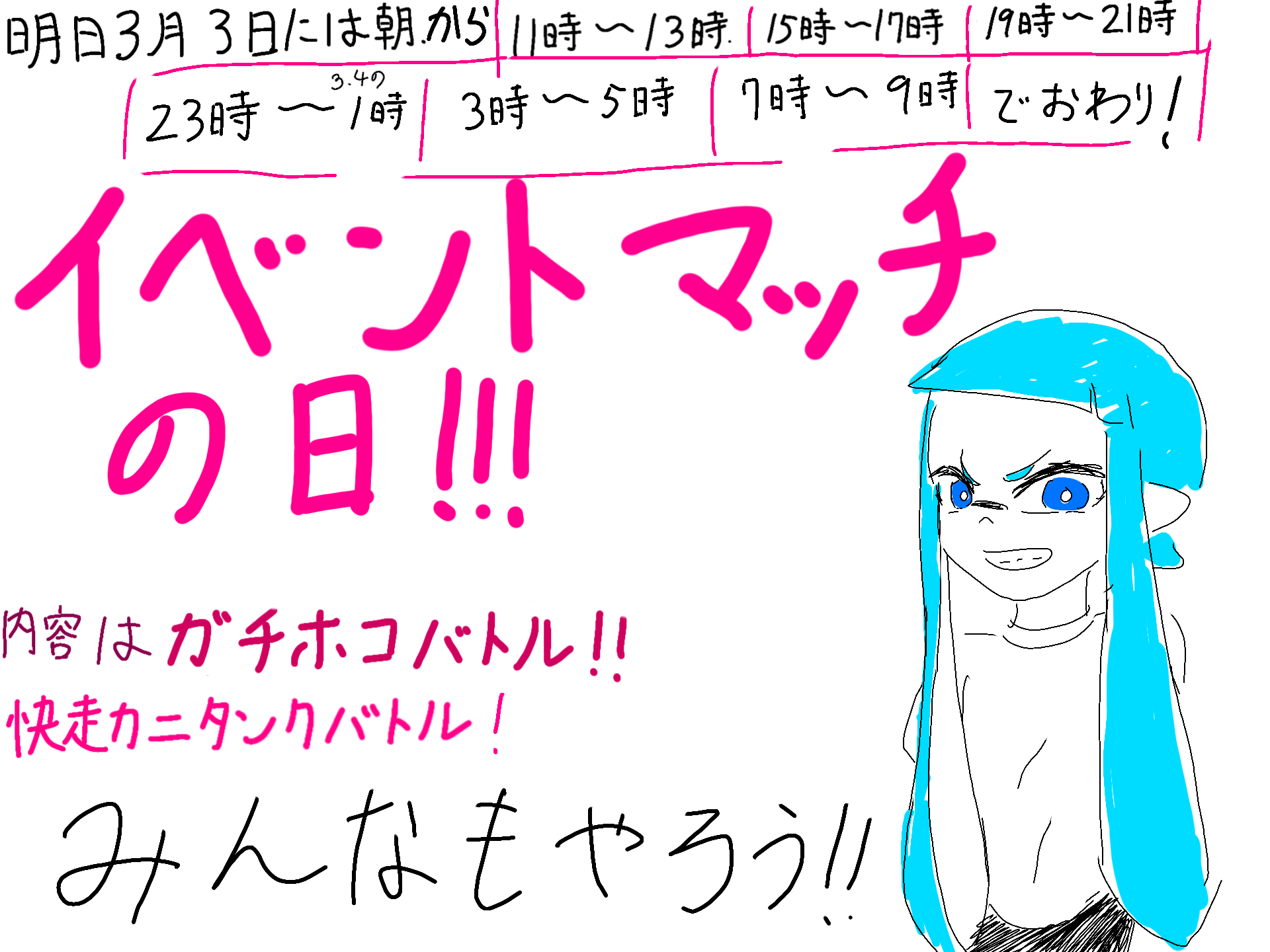 明日はイベントマッチの日!!!!!!みんなもイベントマッチをやろう!ちなみにバトルの場所は、ナメロウ金属 チョウザメ造船 です!