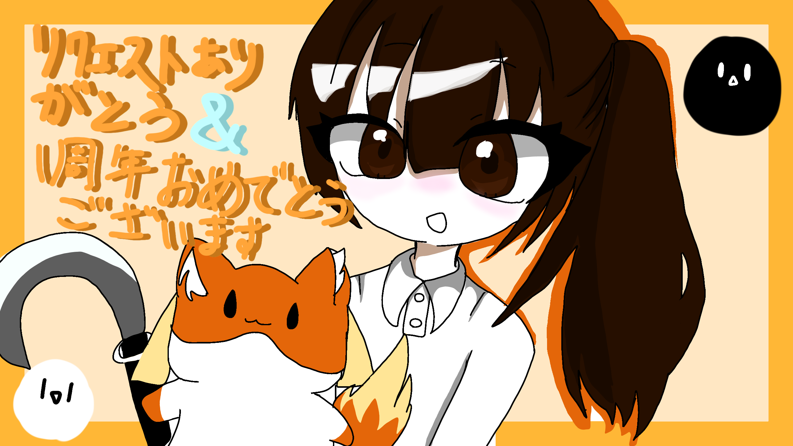 うああああ!!!!え!!??え!?!?可愛すぎませんか!!?!ほんとにありがとうございます;;;;;;;;斑狐もしろいぶったいも黒い物体も可愛すぎる、、、保存してもよきですか、、!?!?