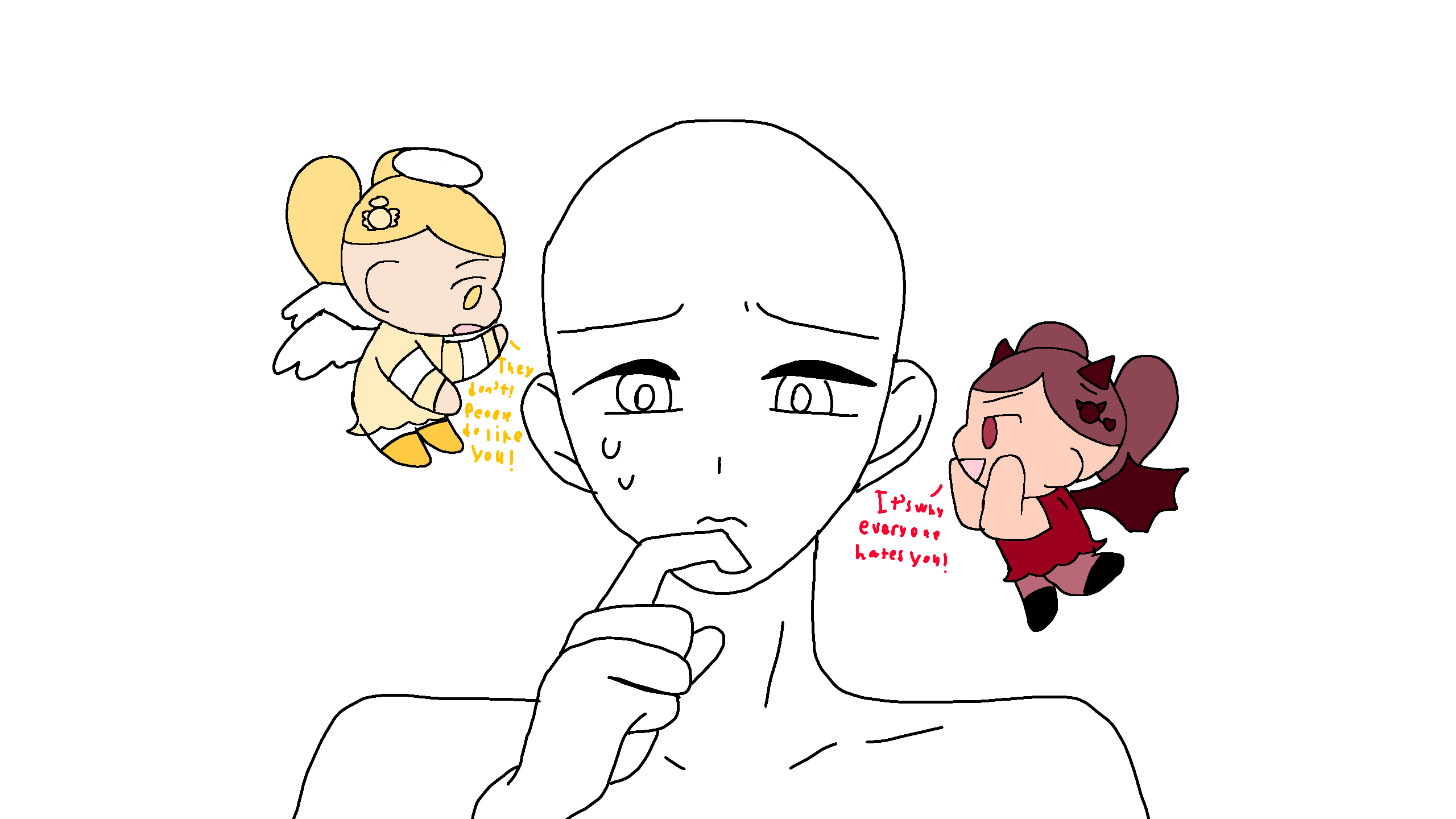 Angel Poppy is trying to support them, but Devil Poppy is trying to insult them-
