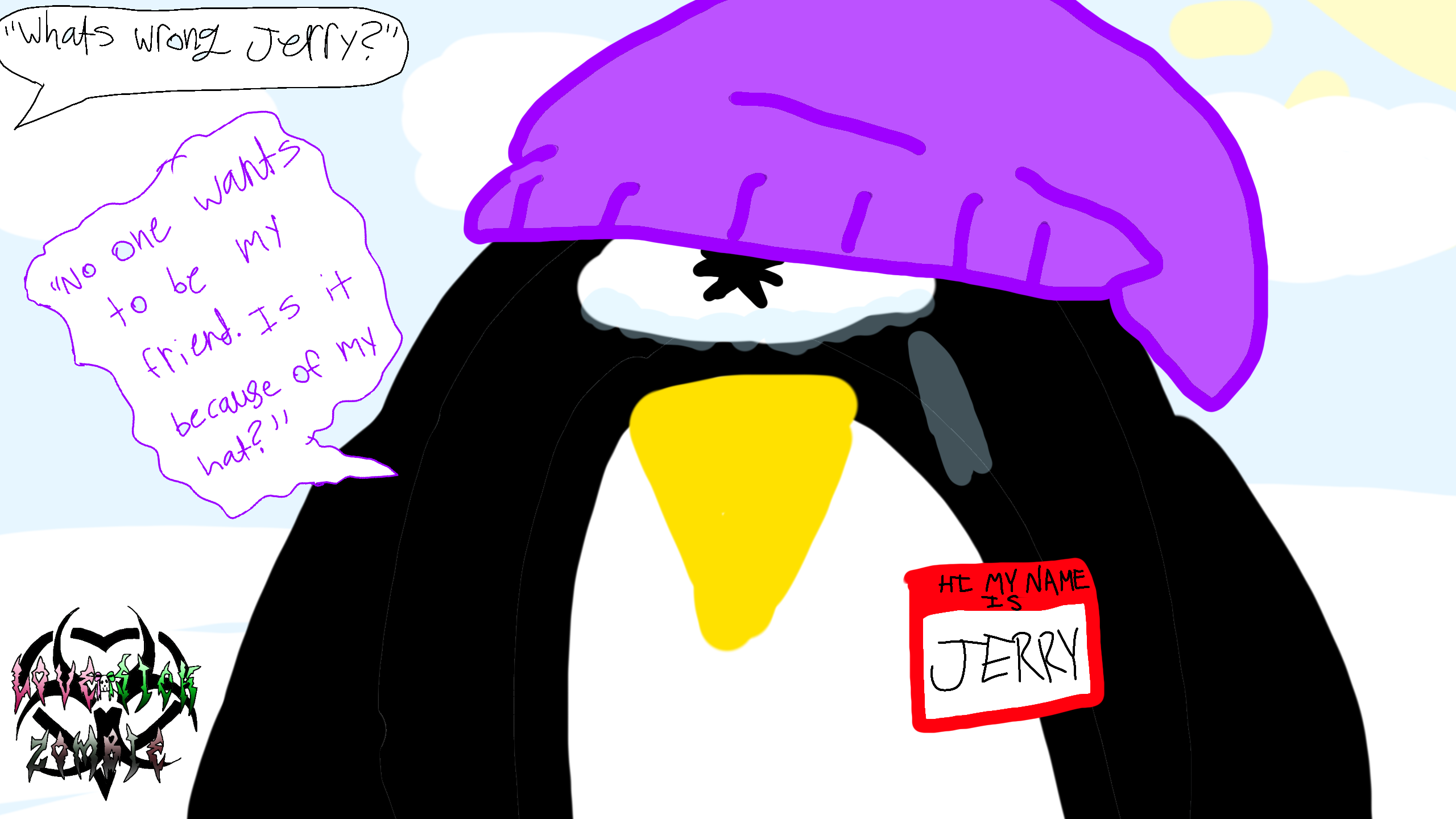 Do yall like his purple beanie? :penguin: #UndeadArt #JerryTheOneEyedPenguinWant to cheer him up? #Remixable