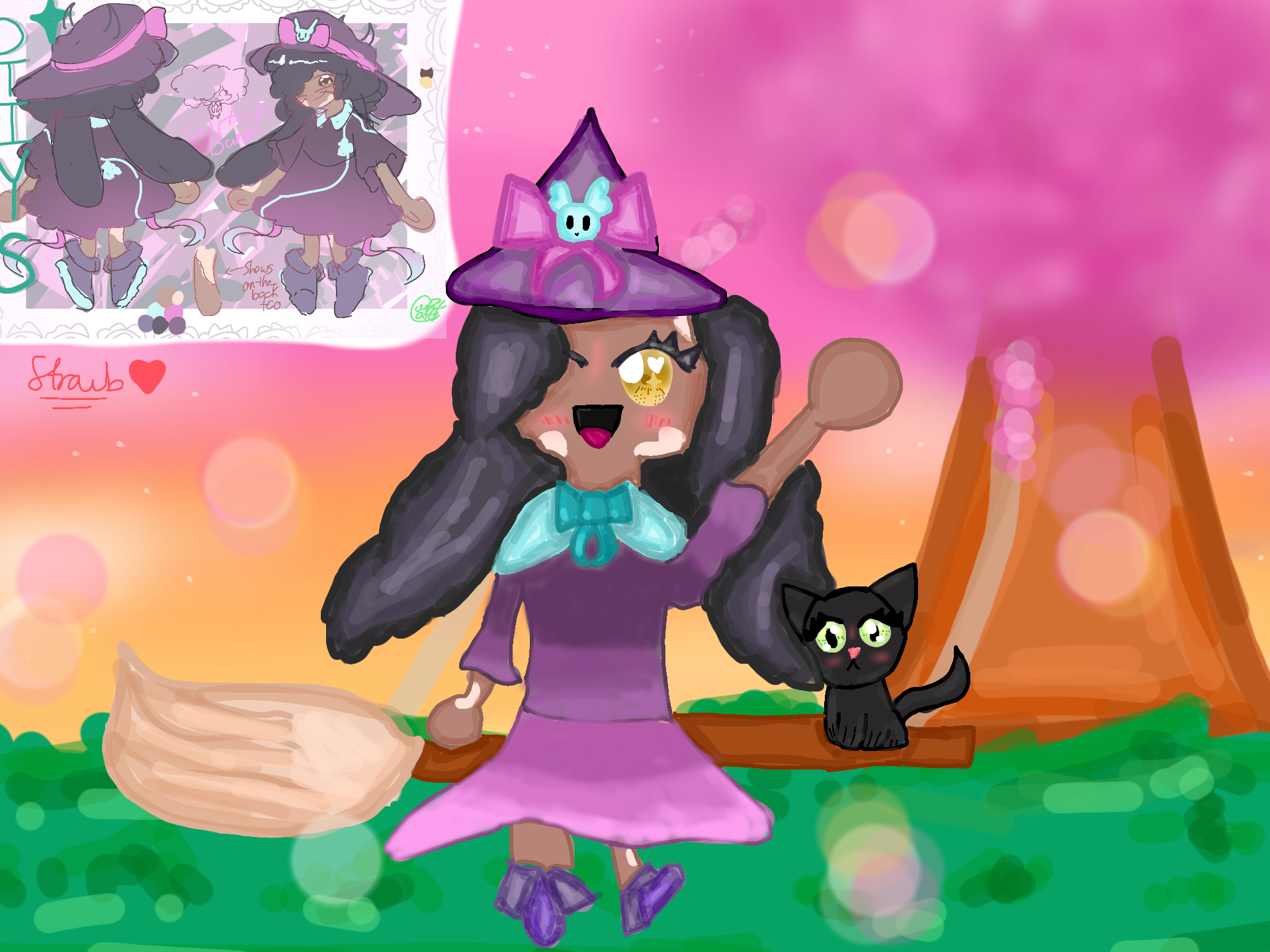 #Strawbdraws #CuppyGifts #Witch #Cute #Sunset