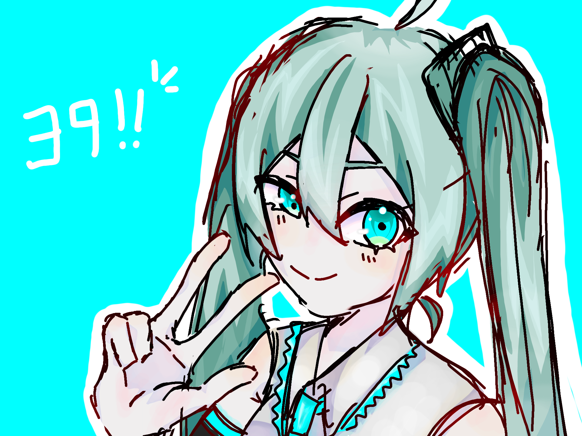 久しぶりに描いた気がする39!!!! #初音ミク #hatunemiku #39 なんか皆付けてたから…