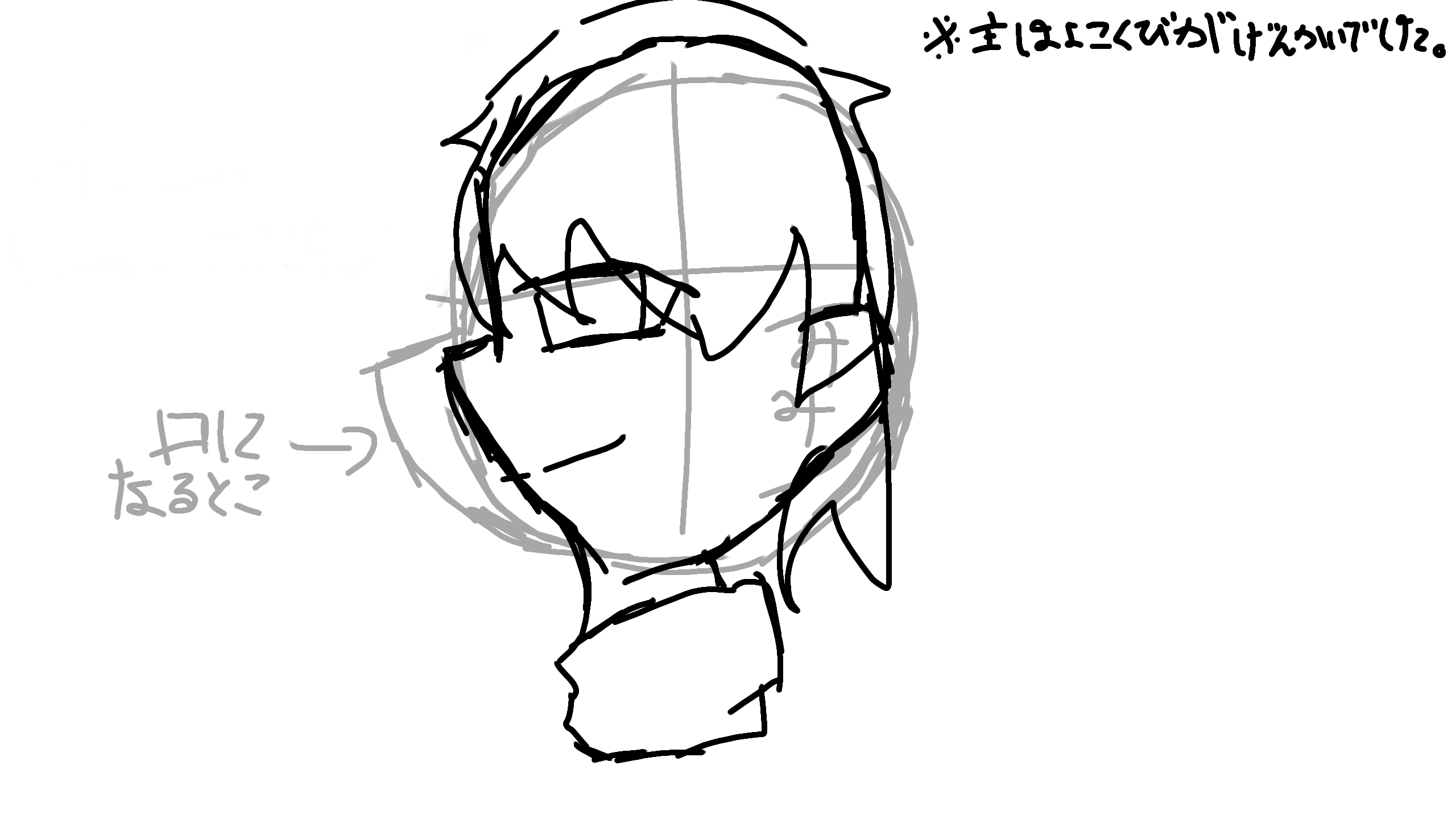 まず肩から腕がありまして正面となる胸の部分も描きます!!普段横顔描かないので文字で説明難しい!!><
