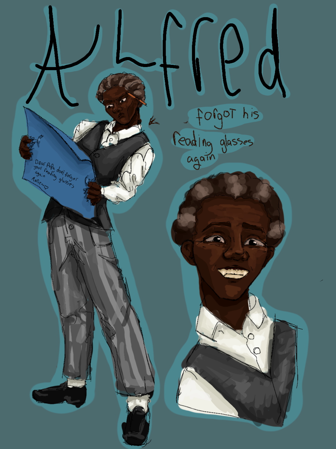 (Also the writing on the paper is a note from Marie saying “dear papa, don’t forget your reading glasses again