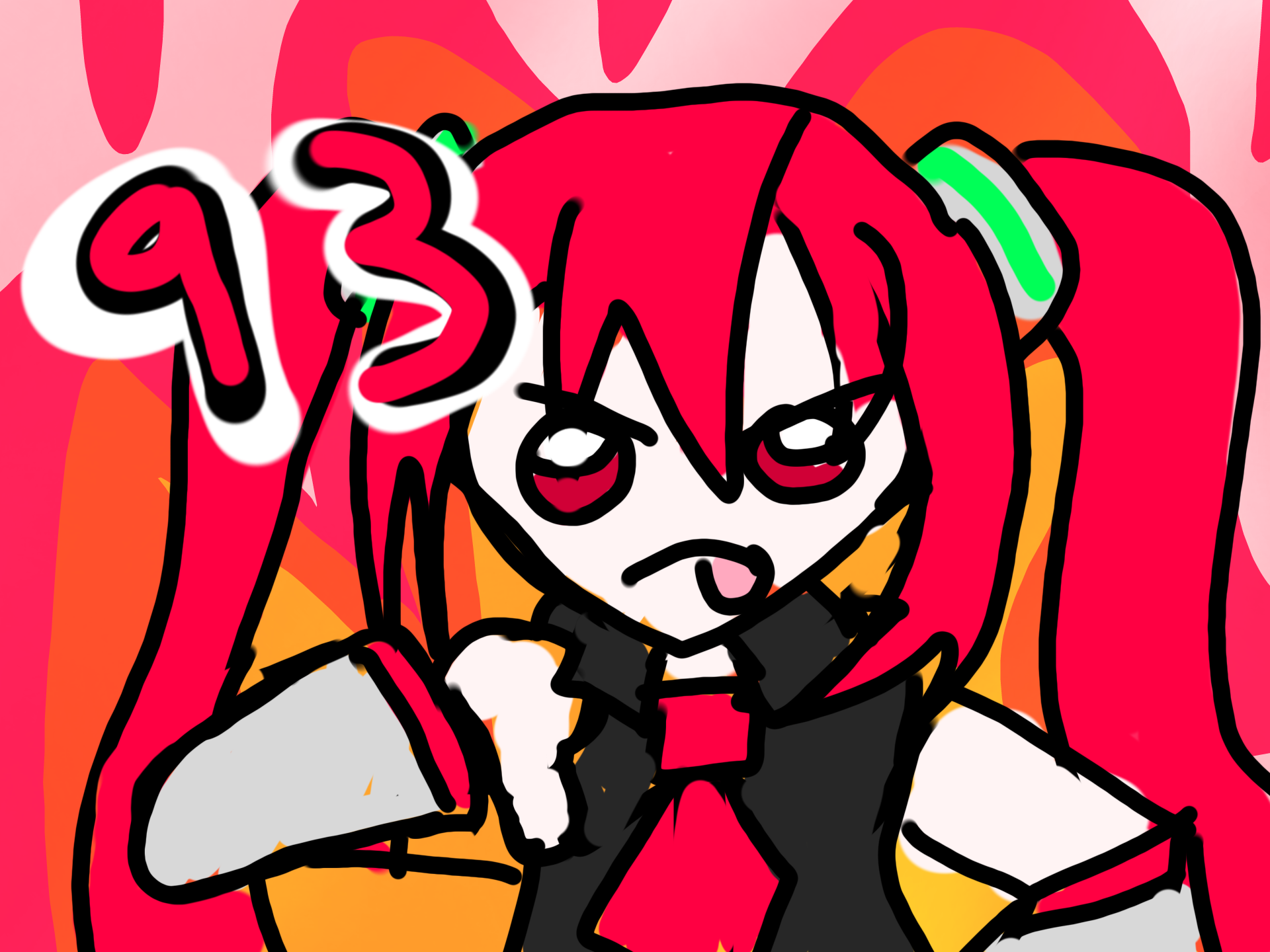 tis is badsune niku her lore is that hatsune miku took a massive aggressive fart full of hatred then badsune niku was formed she HATES hatsune miku wants to destwoy her with all her angry heart