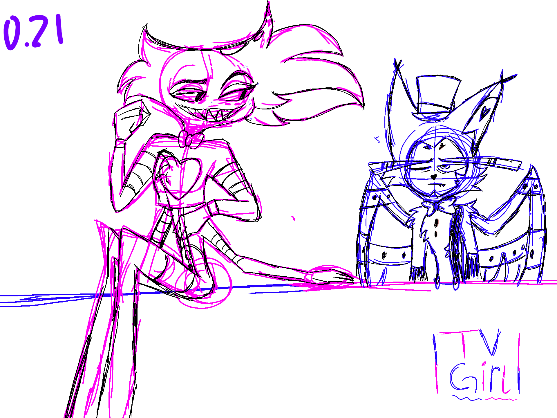 #Angel #Dust #AngelDust #Husk #HuskerDust #Husker #Tv #Girl #TVGIRL #LilyzDoodlez #Sketch #Doodle