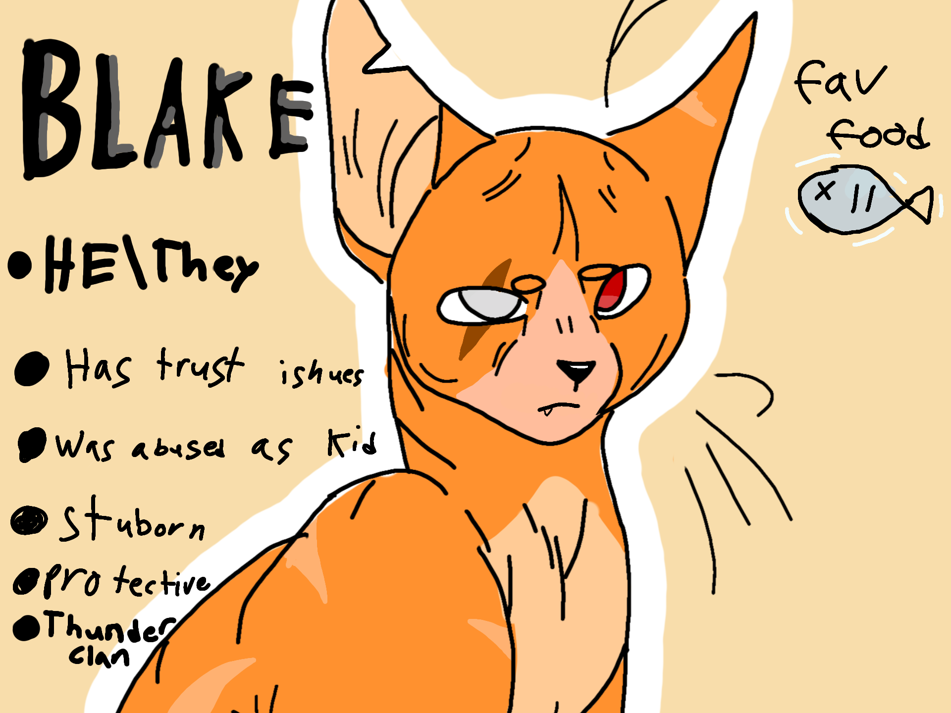 This is great. Though, most clan cats have two part names(Eg, Bluestar)depending on their rank. Unless their a loner or kitty pet who decided to keep their name from before they joined the clan. Not tryna be rude or anything, but this could give you LOTS of lore opportunities. Also, I love Warriors as well. Wanna hear about my OC?