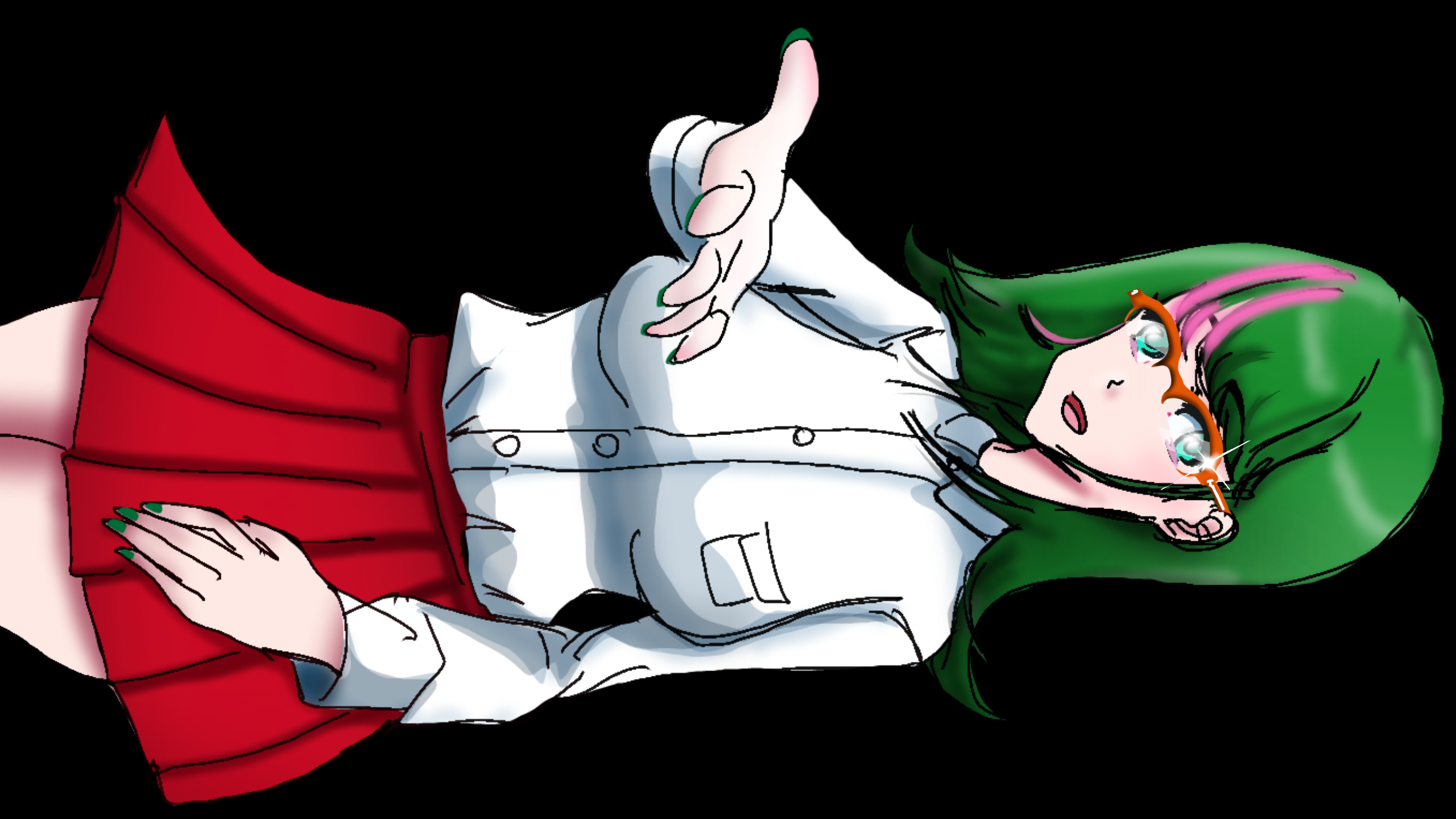 上のレイヤーを消すとメガネ無しバージョンになります。この人は、メガネ無しのほうが良い感じがします。No glasses version. Erase the top layer.