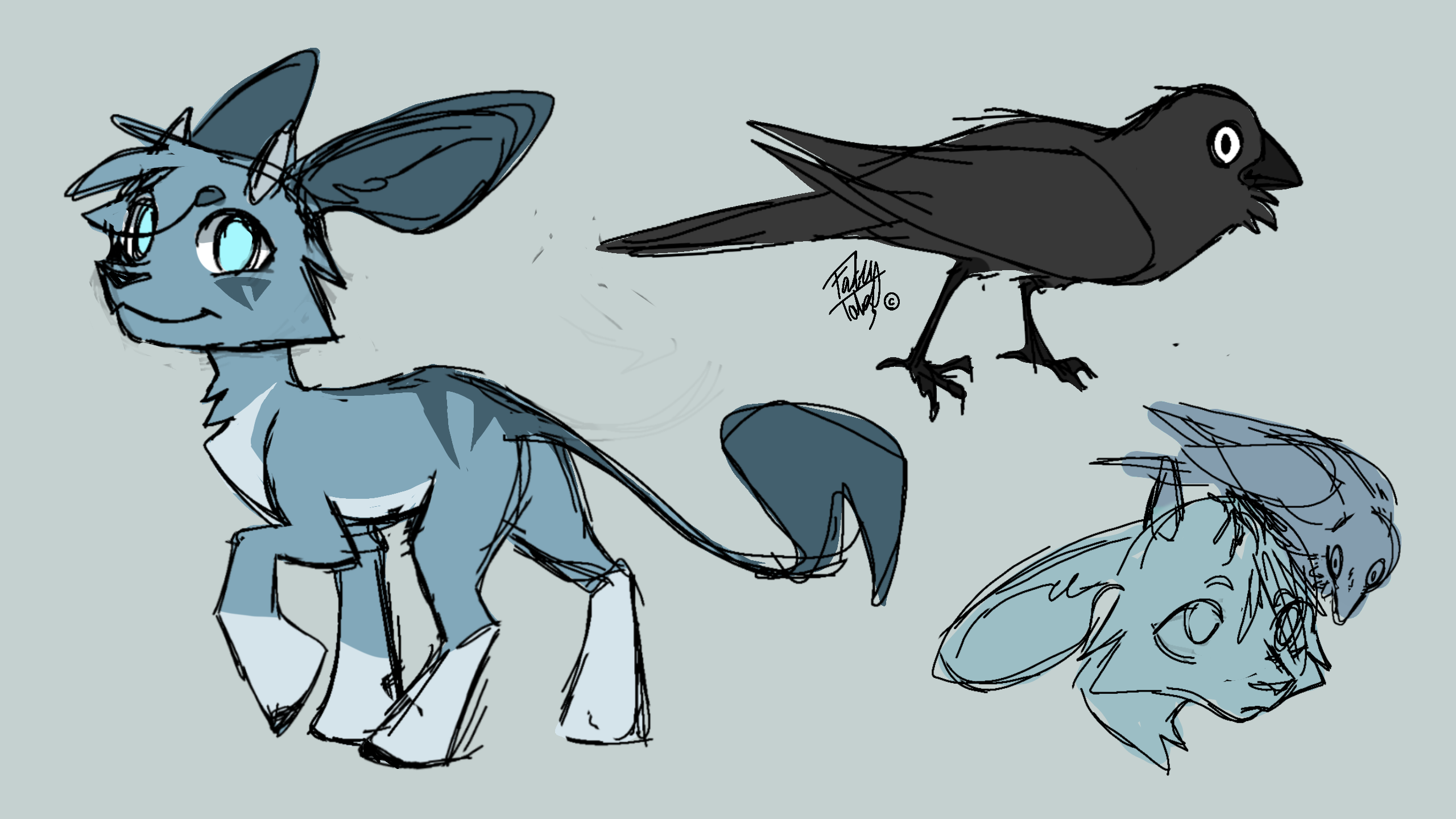 Heeeeyy, been awhile, anyways just wanted to share my current oc designs, this is Tin and Harper (Harper being the raven)