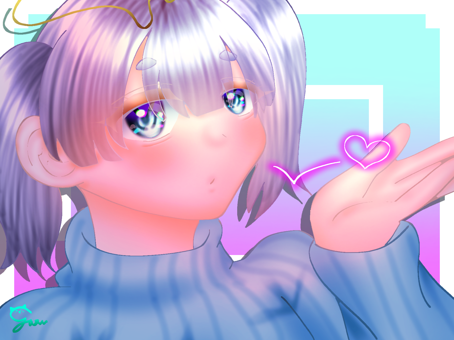 !?!?早くないですか!?書いてくれてありがとう~!まさかこんなに早く、そして高クオリティで書いてもらえるなんて思ってなかったから、嬉しい!!まず可愛い系のゆずちゃんの絵柄とあってて、めっちゃ可愛い!!特に構図が凝ってて、表情も可愛い((投げキッスとか最高すぎ!!次に一時間とは思えない高クオリティ!!一時間で書いたとは思えないくらい、塗りも厚みがあって、綺麗!!筆が早いね~!羨ましい((後、前から思ってたけど髪塗るのめっちゃ上手!!さらさらしてそうと言うか立体感あるし尊敬!!目もめちゃめちゃ透明感があって、色んな色があって(反射してて)目の保養すぎる()保存したよ!!大事にするね~!