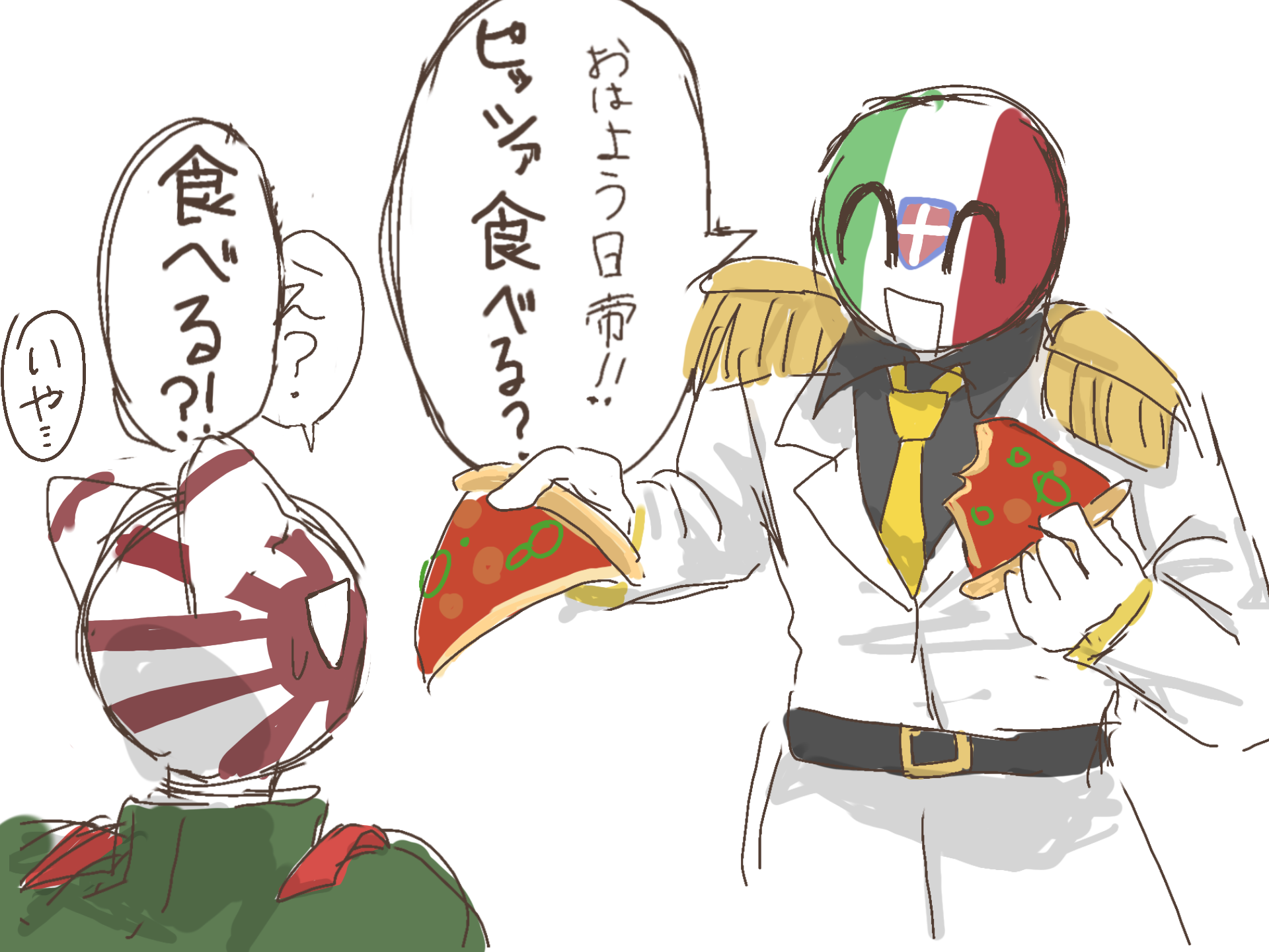 ピザを強制するイタリアやはり軍服はかっちょいい!!!うわあああ!!!