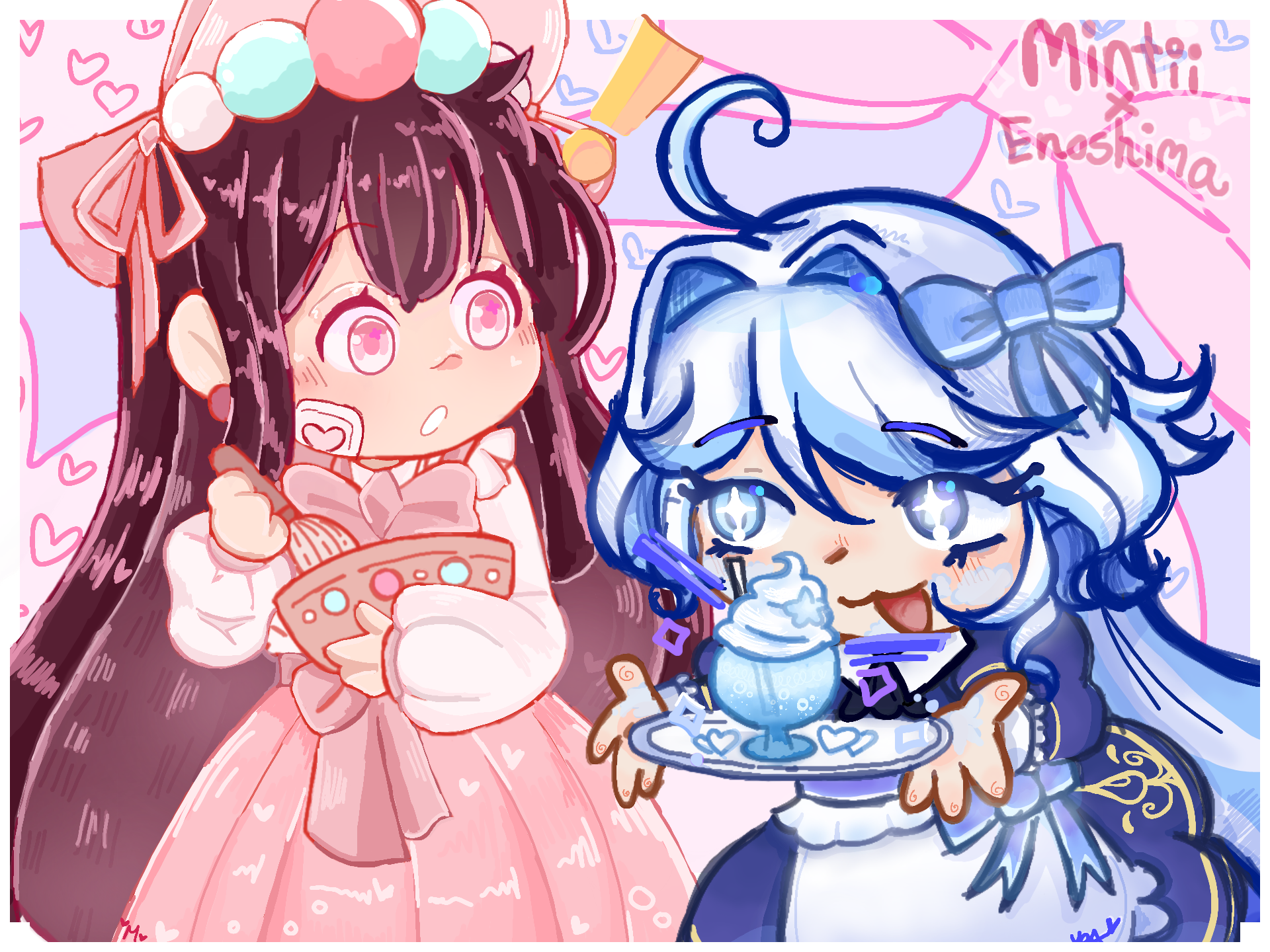 ○ Me and Enoshima (also @puff_central ) did another collaboration with our favorite characters in genshin!! ♡♡♡♡