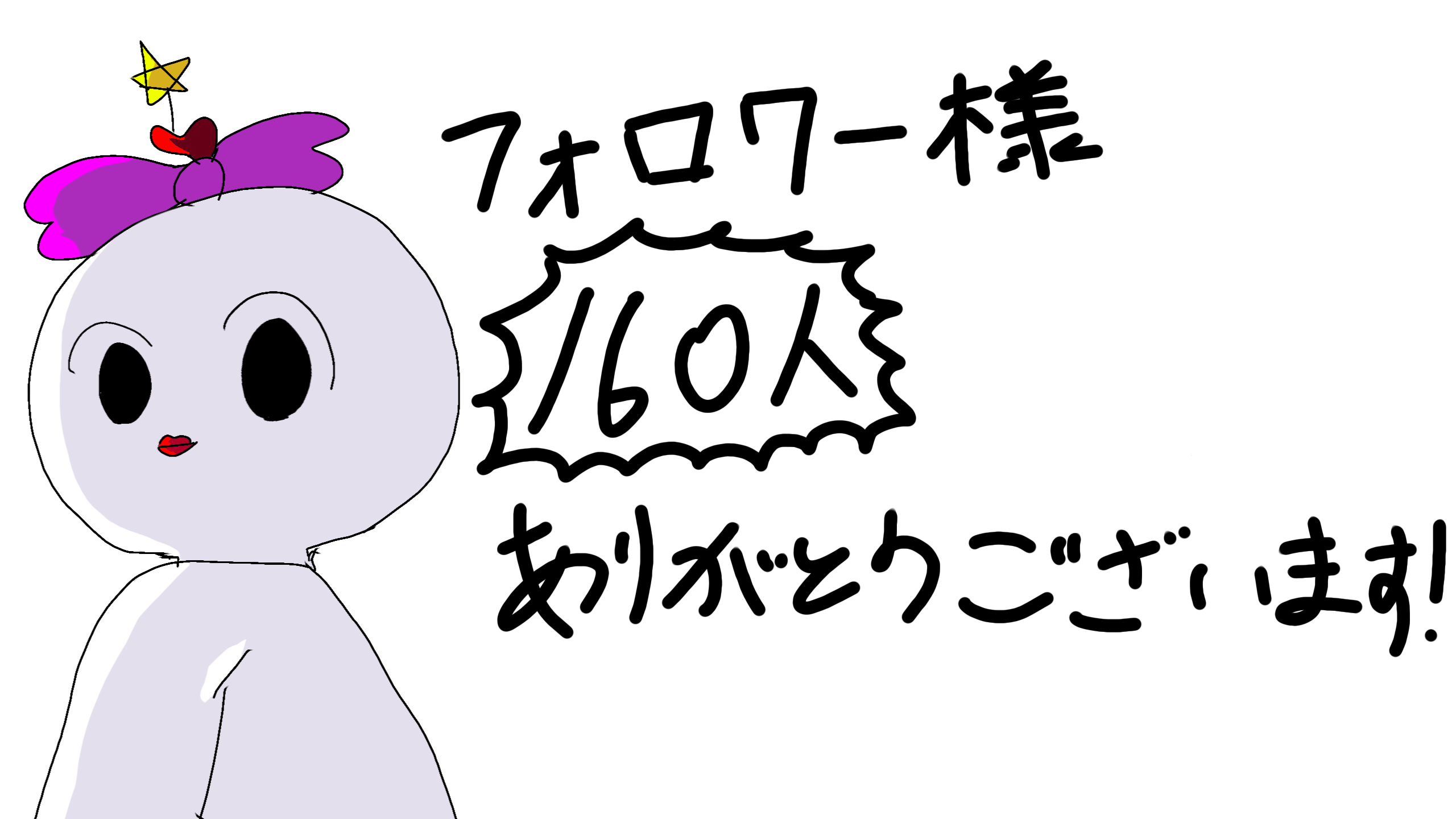 ほんとに!?びっくりしてます!卒業前に160人いけたことに驚いていますがすごくうれしいです!最近は落書きが中心みたいになってますが、近々本気絵描こうと思ってますので!これからも応援よろしくお願いします!