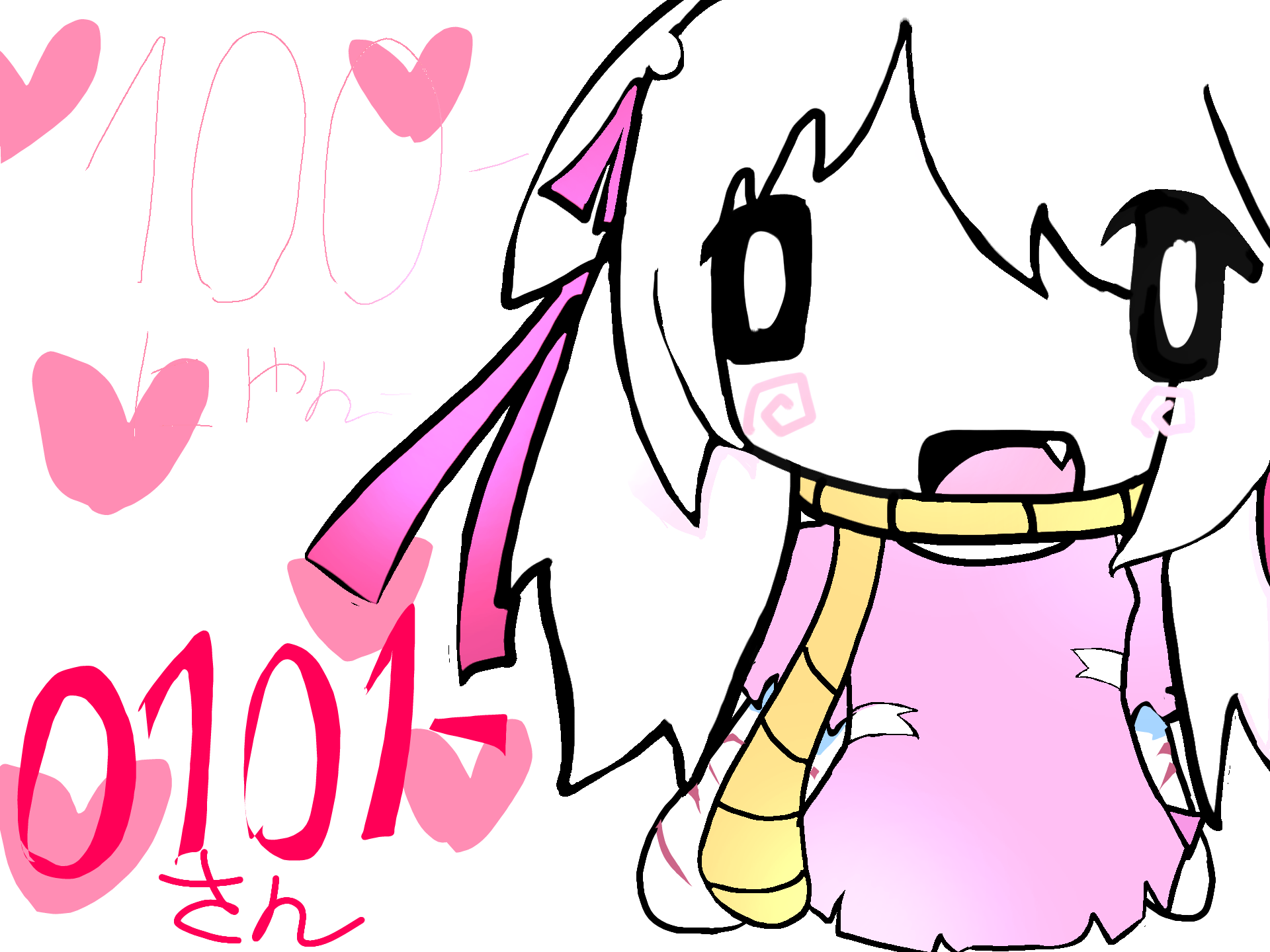 thank you all for 100 followers!!! i have NEVER EVER seen a community so dedicated to me haha im still processing it ;_;. also this is a chibi!!! if you want to see her actual form, go to my 60 follow special :)