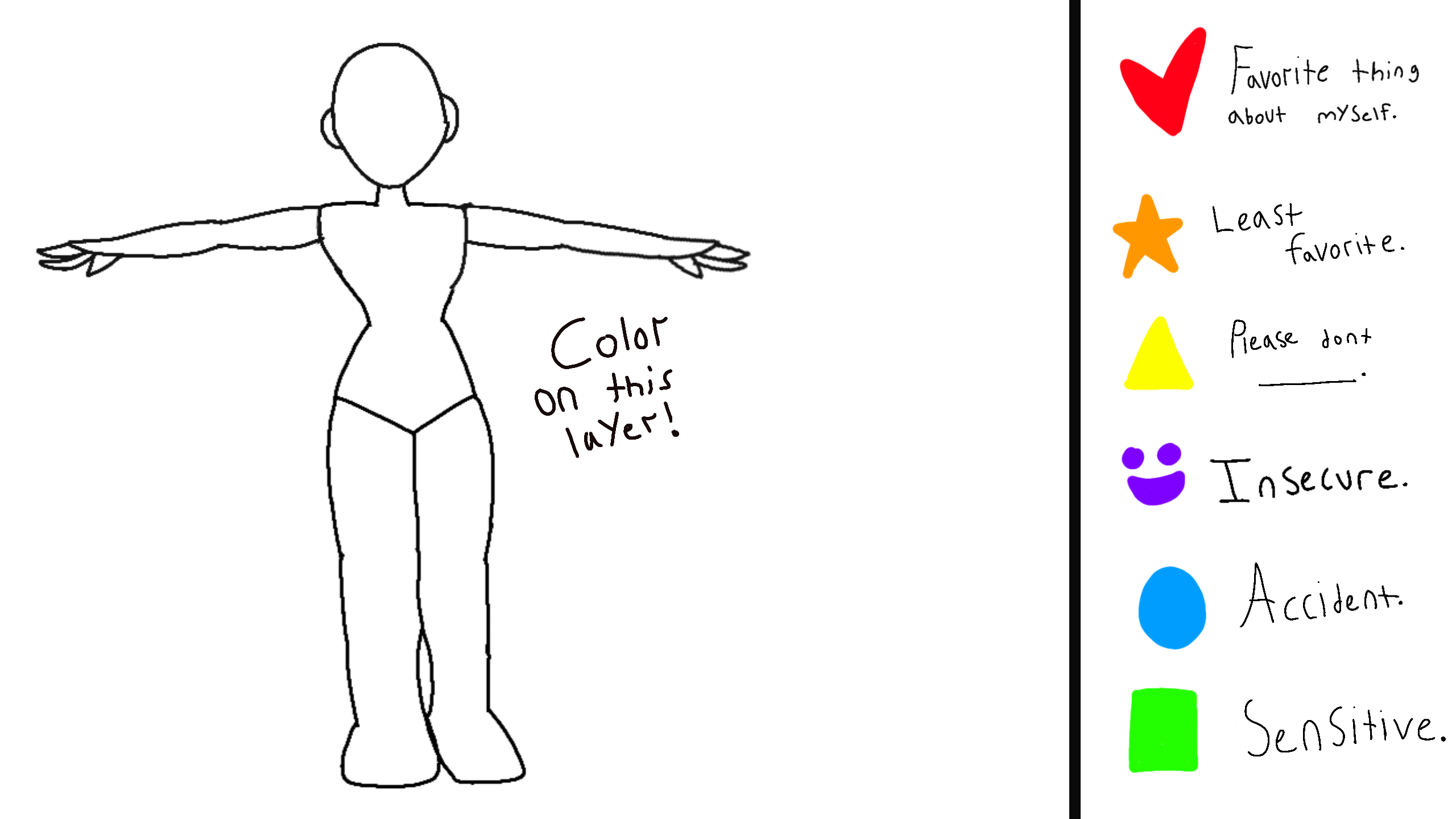 Color in the person! You can respectfully change what each color means if you'd like. Please tag me if you use this. @-_Starz_-