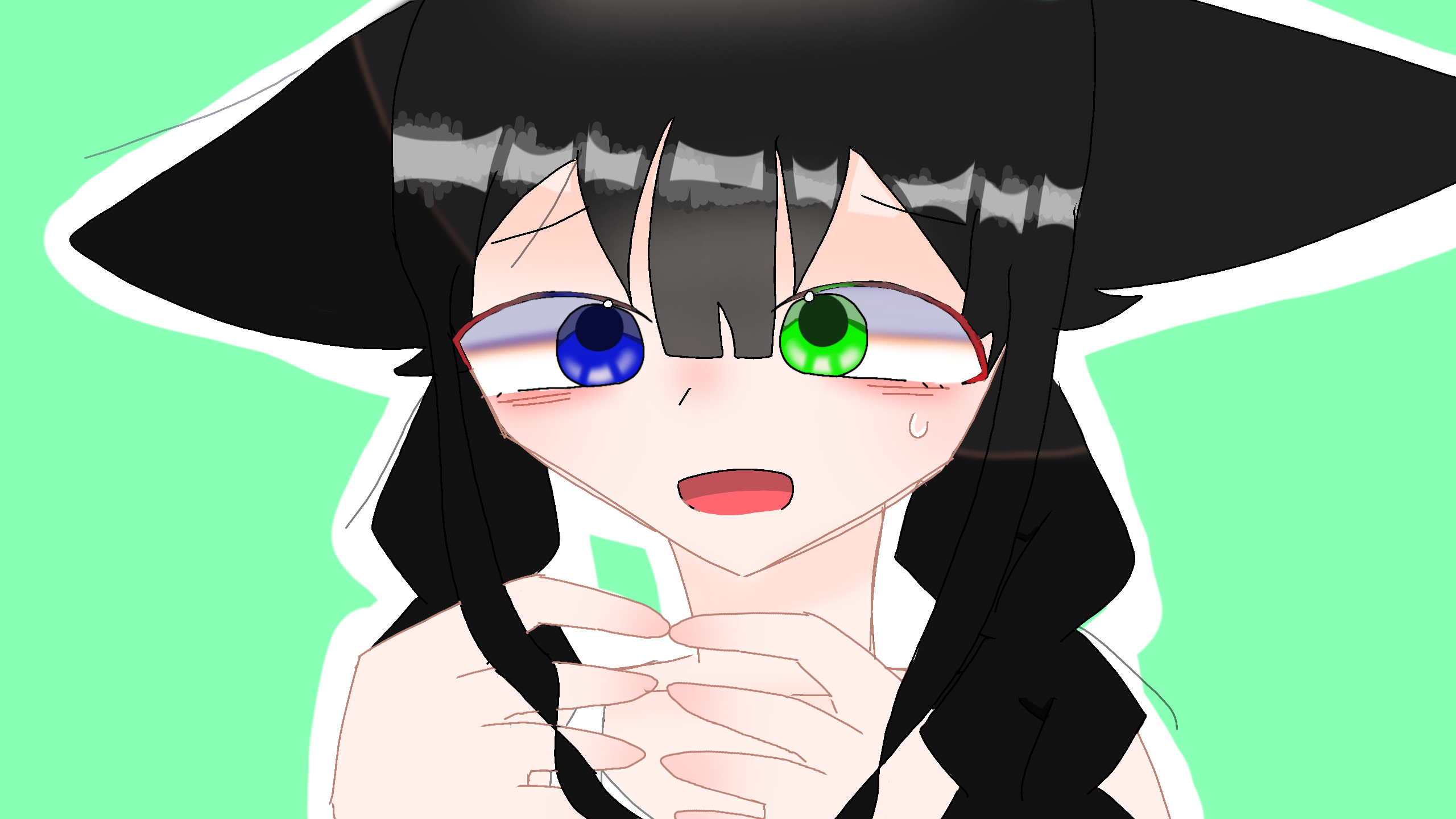 ルーレットで出たものたち女 オッドアイ 三つ編み 黒髪 ケモ耳 クマ 女の子多くない? #ルーレット銀星2つありがとう~!