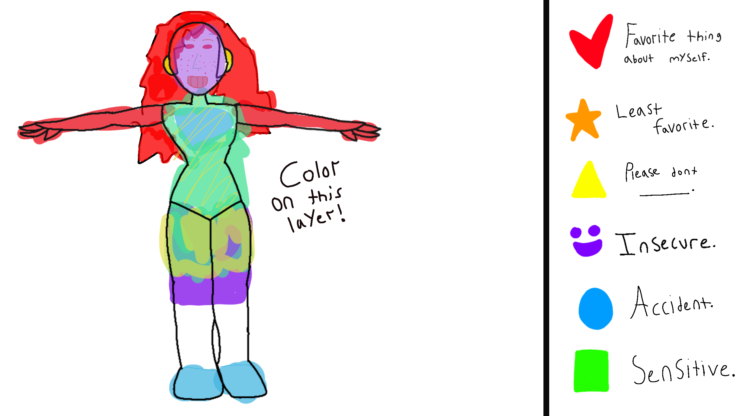 Color in the person! You can respectfully change what each color means if you'd like. Please tag me if you use this. @-_Starz_-