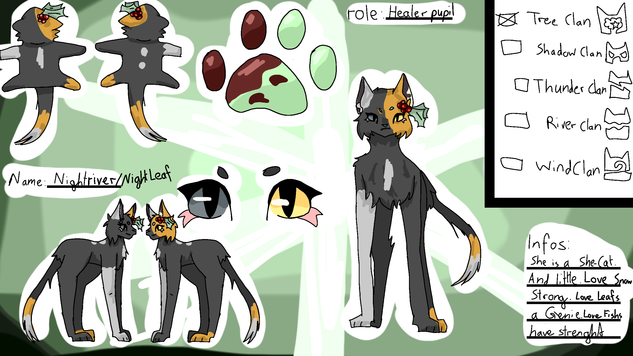 Infos:She is a she-Cat,and little, love snow,strong, love Leafs,a Genie, love Fishs, have strenght