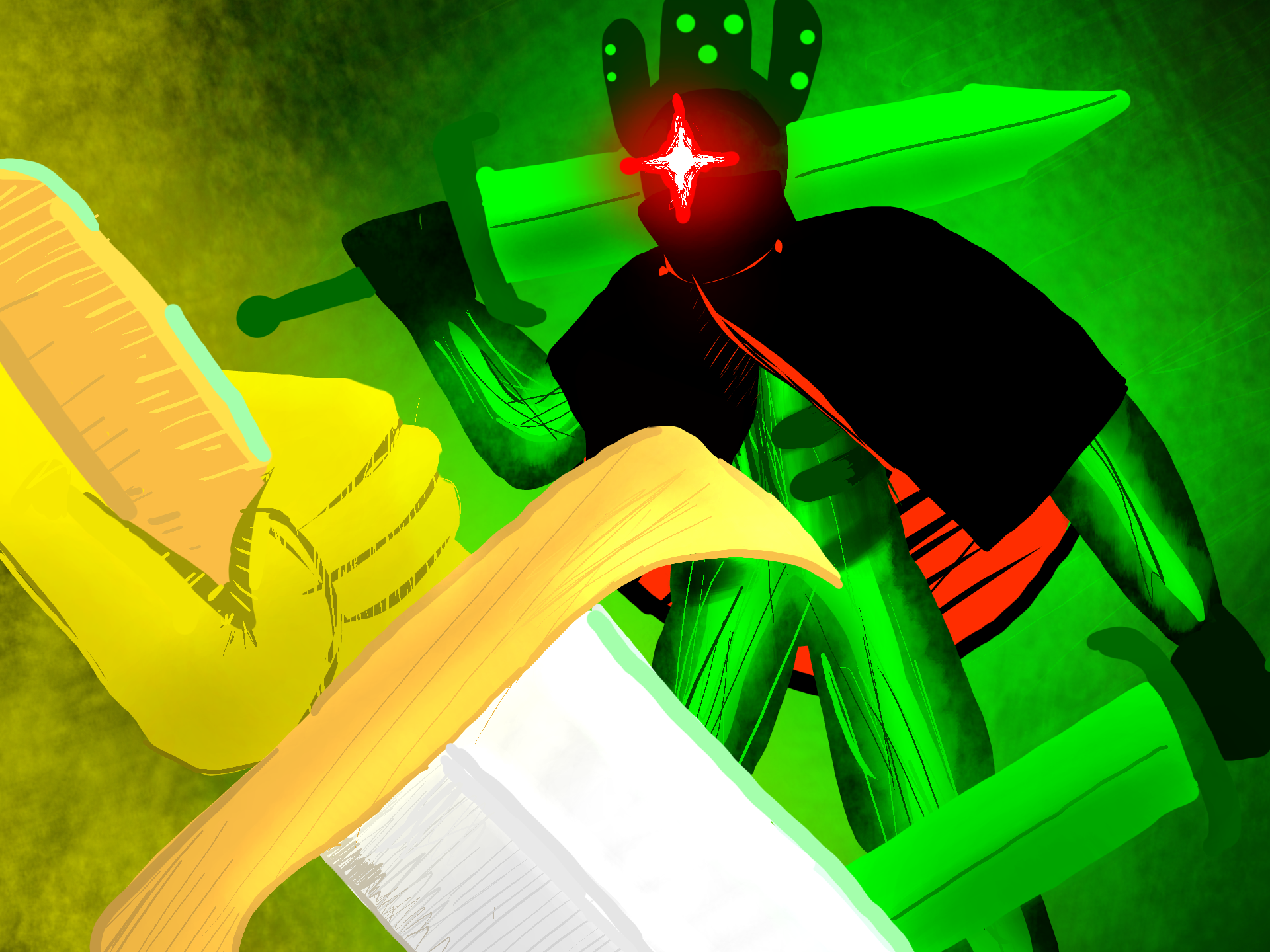 i wanted to draw somthing from forsaken so yeah tags: #green #yellow #swords #duel #hatred