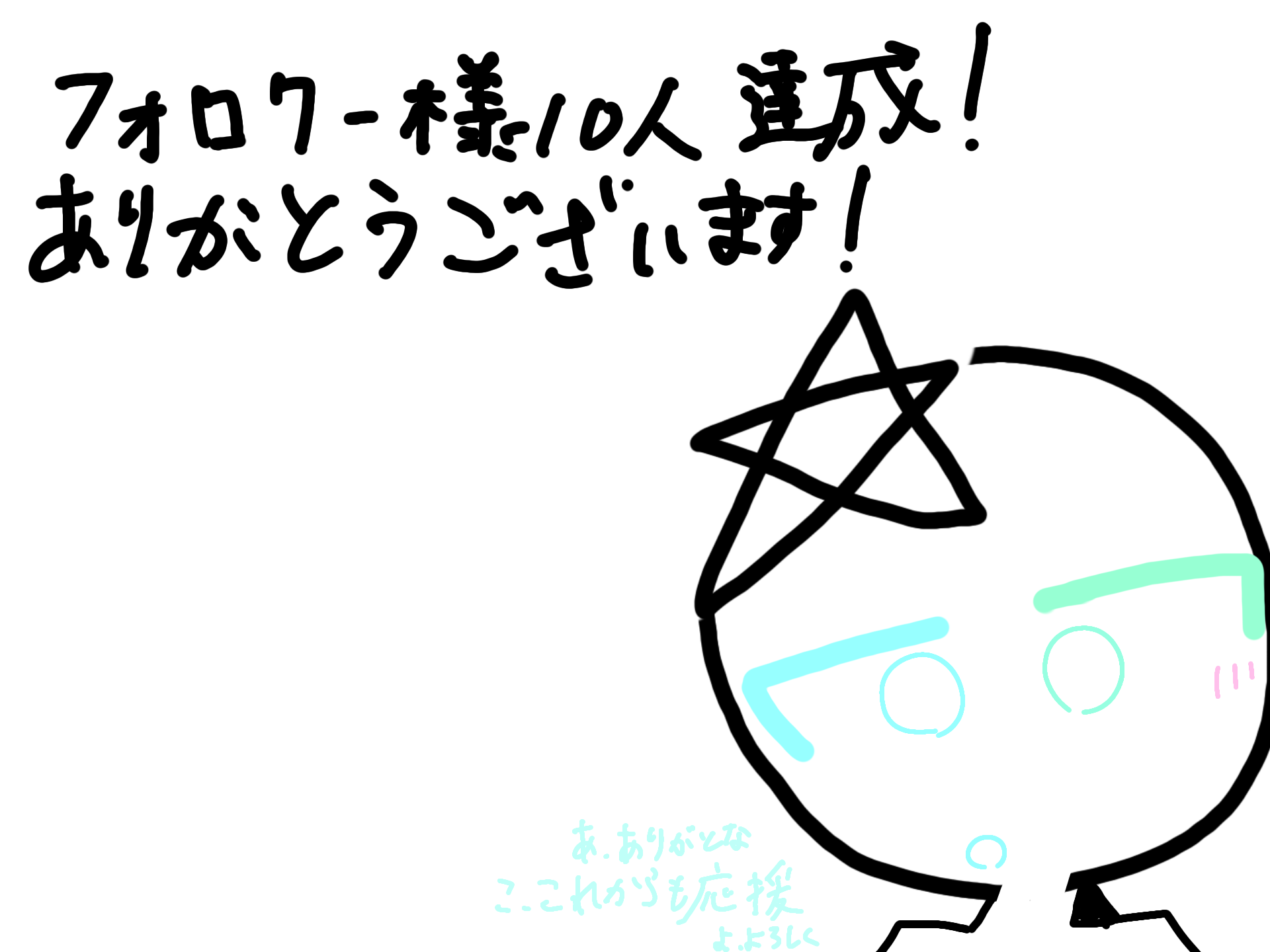 やったああああ!フォロワー様十人ありがとうございます!これからもアイ君と僕を、よろしくお願いいたします!本当にありがとうございます! アイ君が言ってる言葉薄いからここにも描きます「あ、ありがとな こ、これからも応援よ、よろしく」と言ってます!銀星までありがとうううう!;;