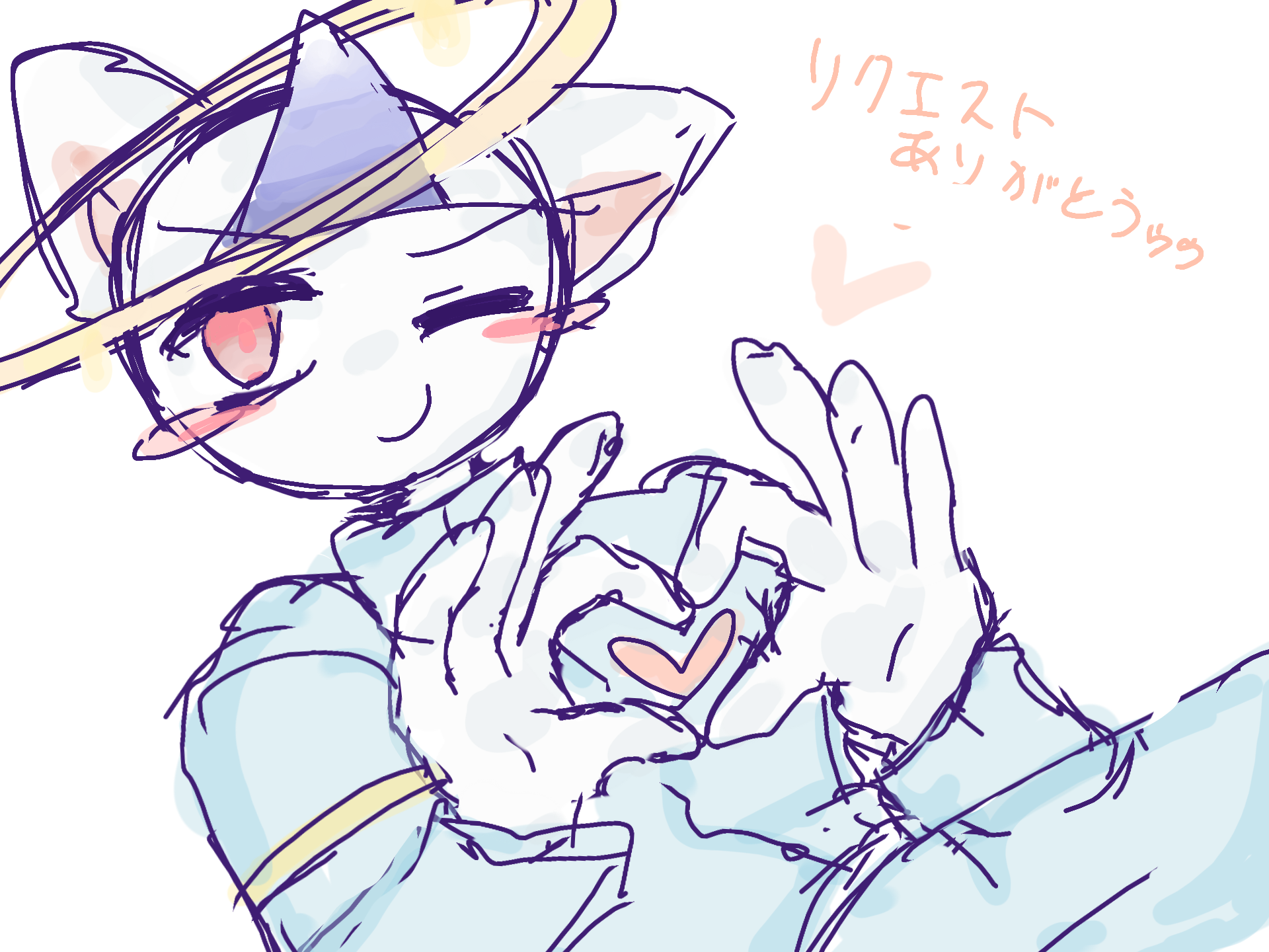 めっちゃ反応遅れたスマソうちの代理タン!!!!!!!ハートポーズしてる!!!ウィンクもしてる!!カワチイ我ながら可愛いocを描いたな!(???(自画自賛)嬉しい!!描いてくれてありがとおおうねぇぇぇぇ!!!!!君は神絵師ダネ自信を持テ!(誰目線ダヨ)(語彙力の消滅)