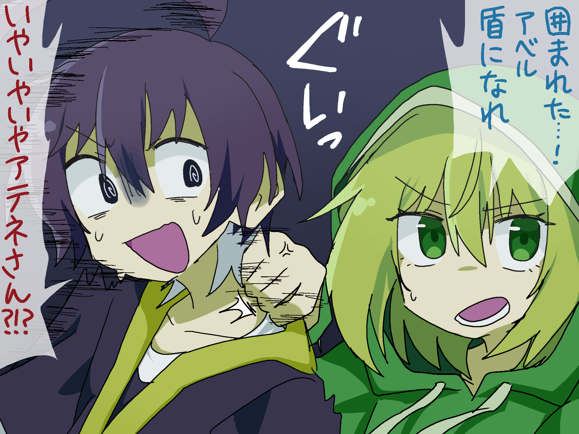 この絵はアテネちゃんの「何かが襲ってきたらアベルを盾にして逃げる」みたいな内容のセリフを元に描きました!!参考動画を見てなかったので内容が正しいかはわかりませんが><;