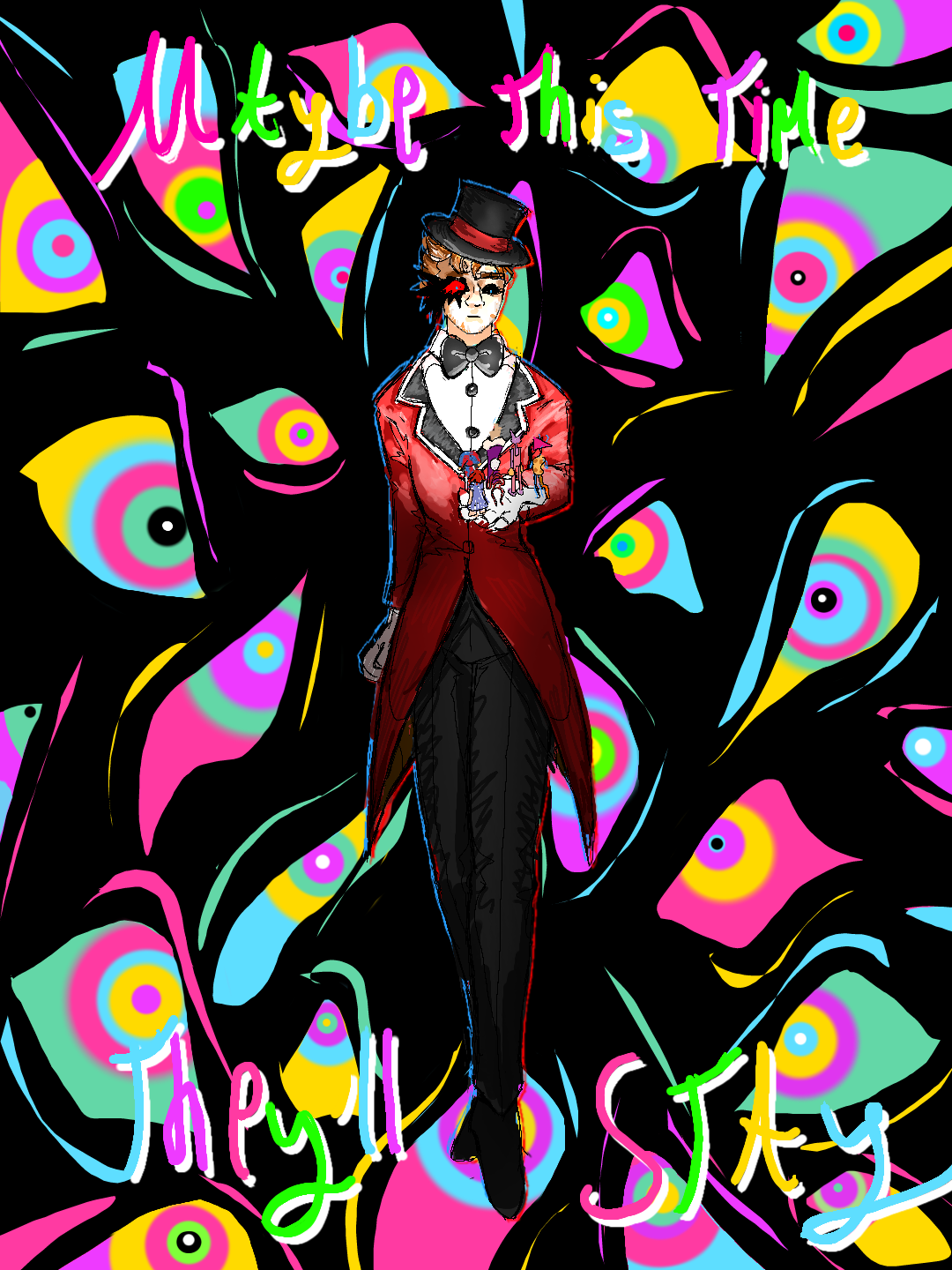 Once again, i gave up half way through but I had already dont so much that I didn’t want it to be banished to the w.i.p. Pile, so here is a half finished drawing of Caine i made while processing episode 8