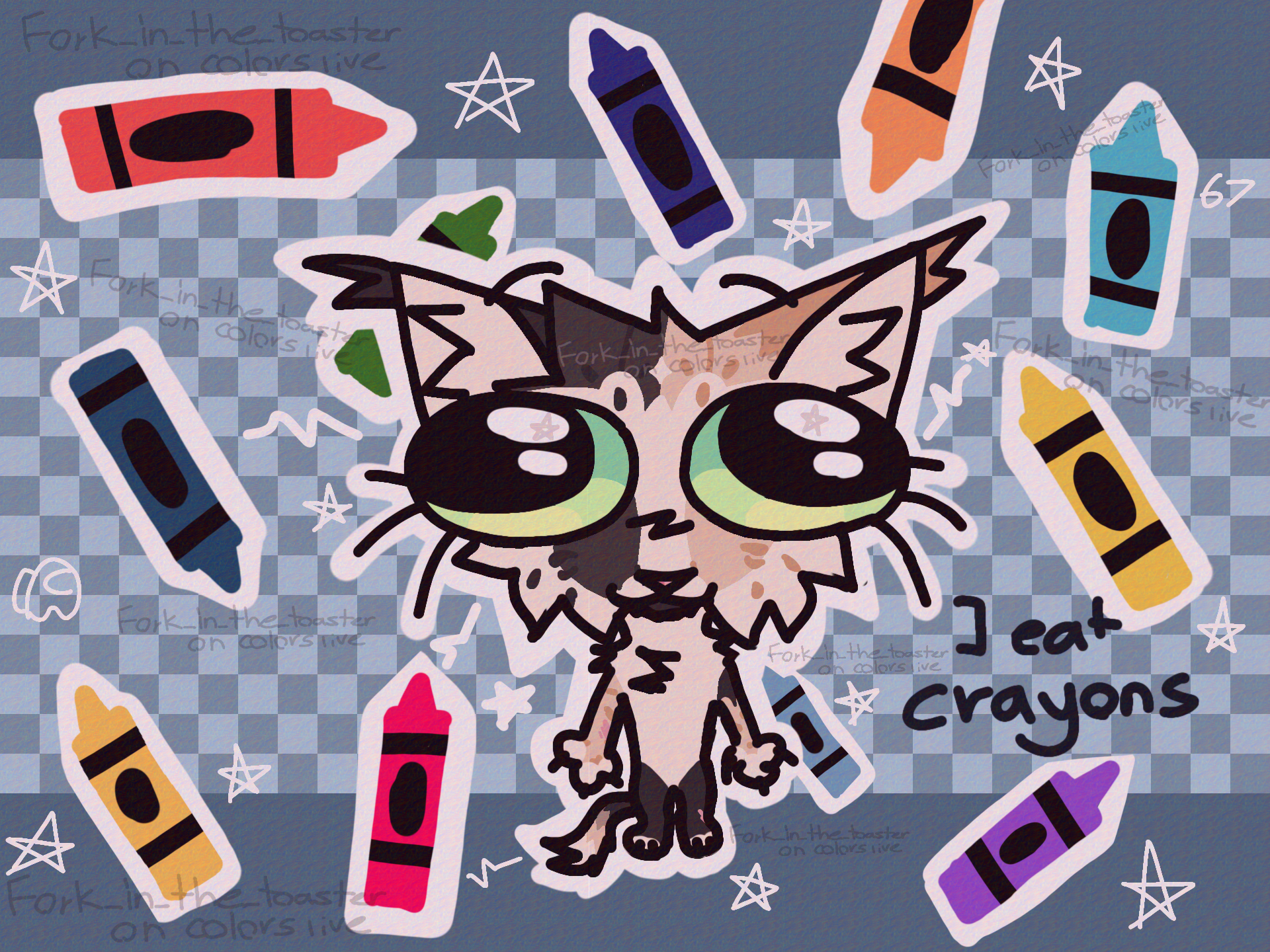 My teacher got mad at me for eating crayons in kindergarten :D #crayons #cat #goofy #silly #67 #me #oc #character #food #shiny #eat